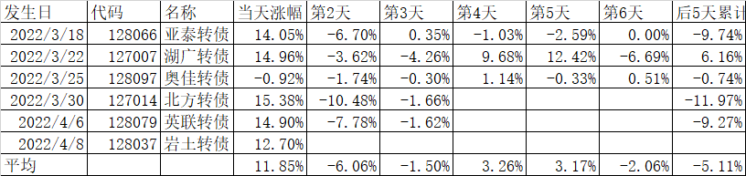 从3月18日开始每次卖出涨幅超过10%的可转债我都记录下来了,20天总共6次,其中奥佳我盘中涨了10%卖的,当天收盘跌0.92%,这样5天的平均超额收益最起码有6%。大概持有40只可转债,那么每次的贡献大概=6%/40=0.15%,一个月大概可以遇到9次,一年大概108次,不算复利0.15%*108=16.2%,已经相当不错了。