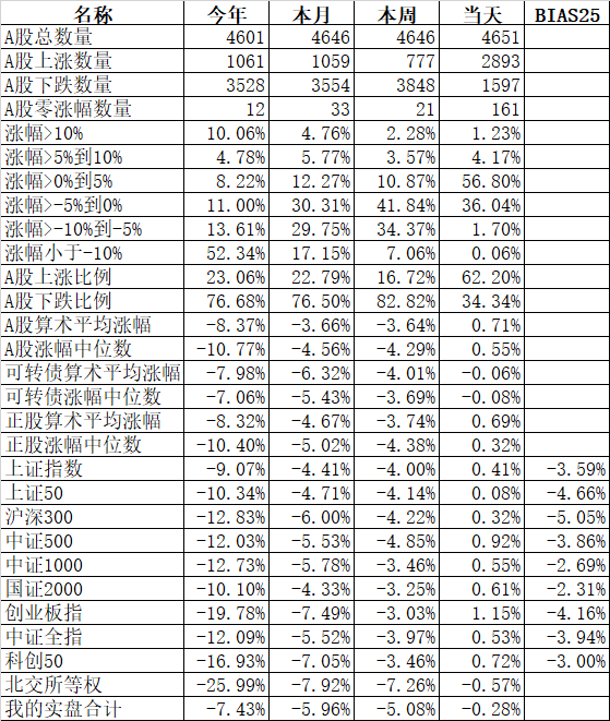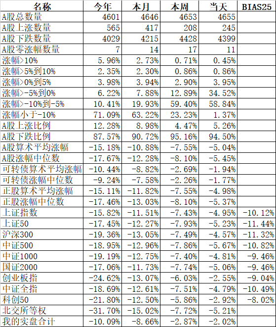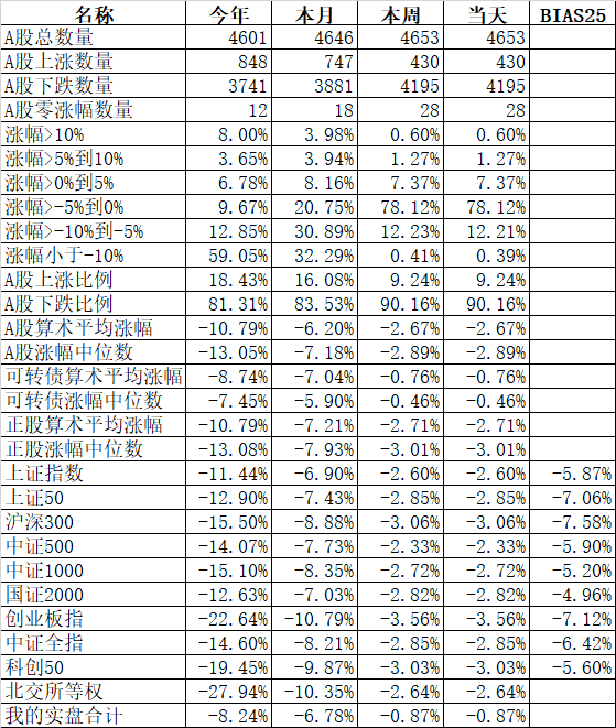 不过我持有的可转债平均跌了3.51%,实盘因为还有其他品种,但今天账户整体也跌了3.44%,今年创了新低,下跌了7.58%,说不心疼是假的,毕竟都是真金白银的烟飞灰灭。虽然跌幅还不是历史上最大的,但亏损的金额肯定是最大的了。