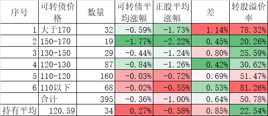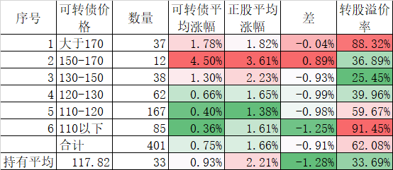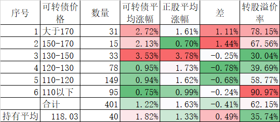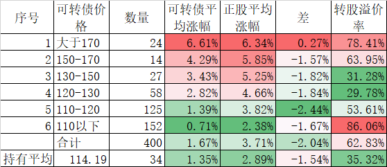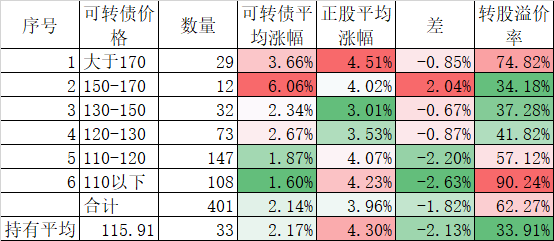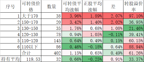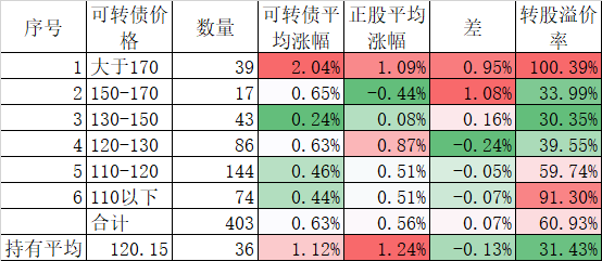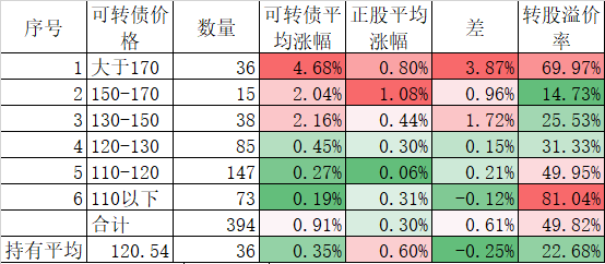 国证2000这个小盘股指数一涨,可转债的行情错不了。而且和往常一样,可转债涨幅基本上跑输正股,低价可转债跑输高价。