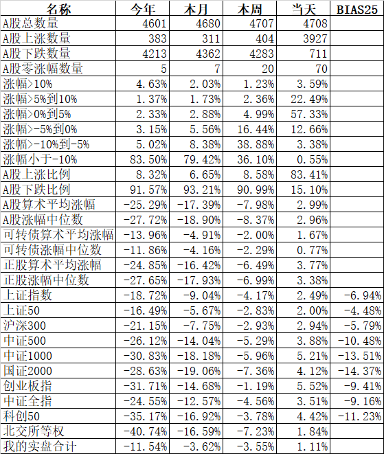 今天国证2000跌幅高达4.28%,可转债表现自然不会好,不过低价的可转债由于债性保护跌幅还是小多了。我的实盘昨天靠两个柚子债取得了正收益,今天运气没那么好了。整整跌了1.53%,几乎把本周前三天的收益全部跌去。