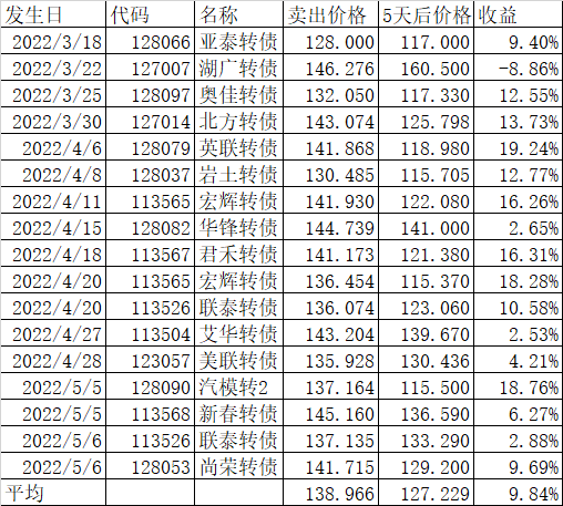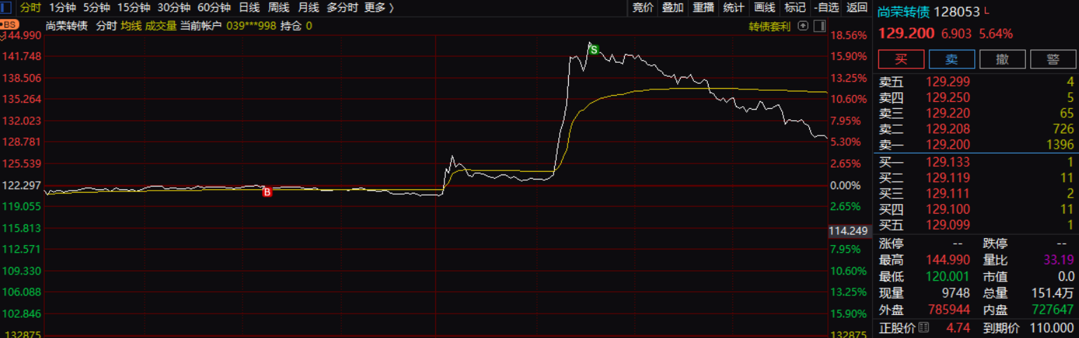 正在我庆幸的时候,在收盘前突然发现联泰转债又在大涨,看了一眼正股,竟然还是跌的。我知道又遇上柚子了。真是好事成双,再次手忙脚乱的清仓了联泰,不过这次我卖的早了点,只有盈利了10%左右就被我全部清仓了,联泰最高涨到149.98元,涨幅高达18.17%,当年收盘回落到9.08%。