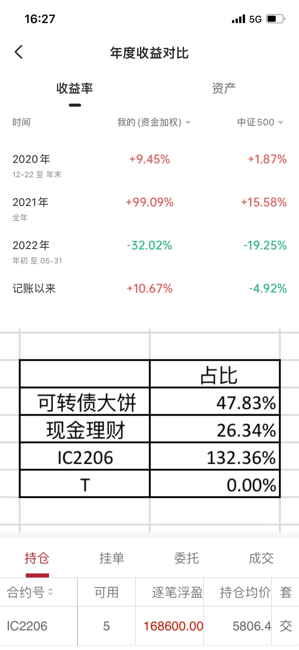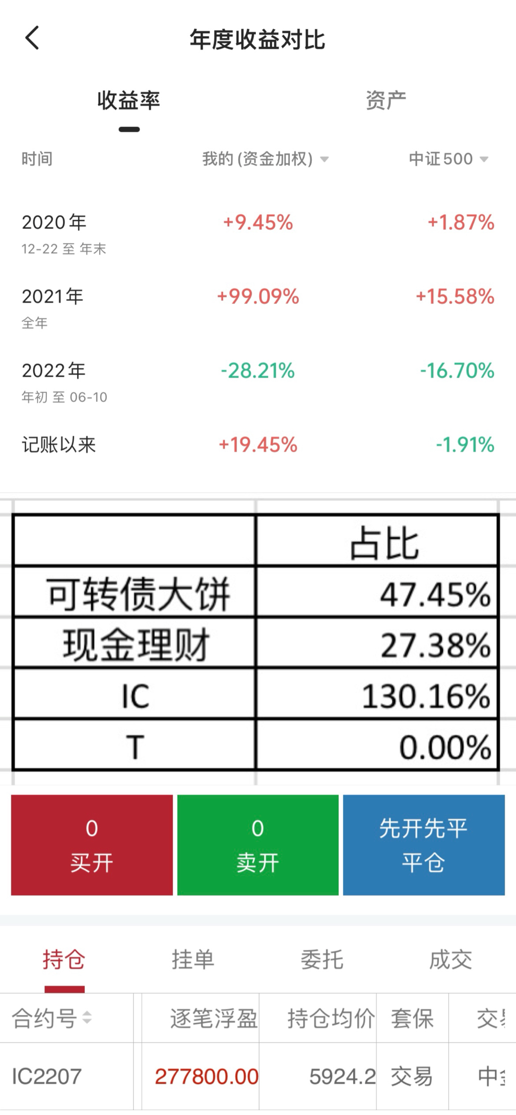 去年是真正把主要资金投入到中证500期货和十年国债期货,并取得了不菲的收益。