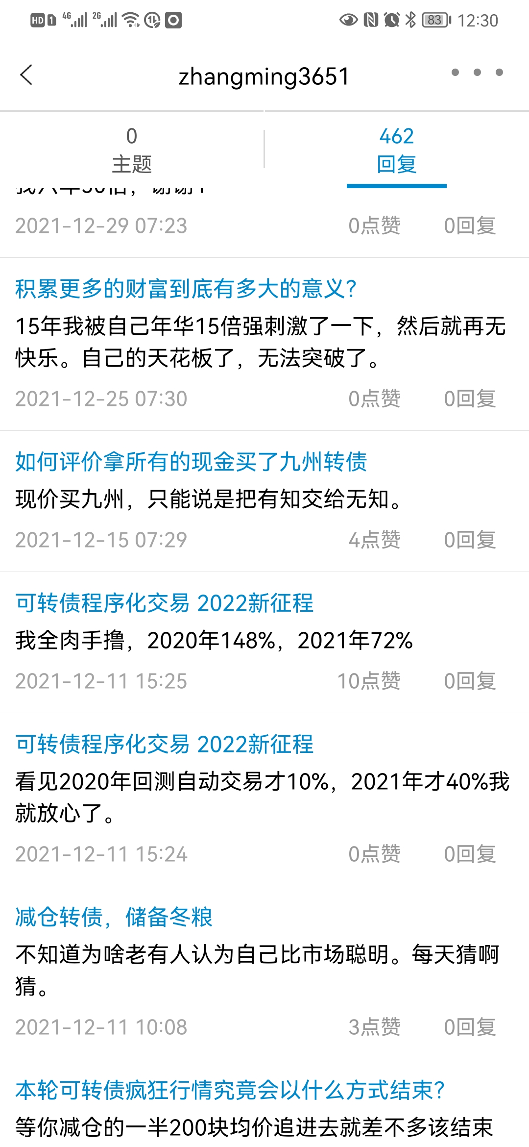 但A股市场因为历史还很短,制度建设还不完善,投资者散户比例大且不成熟,等等因素决定了A股市场完全不同于港股和美股市场,存在一些特色的投资机会和角度,比如去年春节基金大热大卖,而今年春节基民纷纷灰心赎回,造成的市场波动;北交所的成立造成的转板机会;新投资者的涌入和避险需求造成的去年的转债大牛市;等等等等,这些机会我都看到了,但没有去深度研究,这个需要自我批评,其原因就是我的股票投资已是满仓状态,所以给自己一个理由就懒得去研究了,就是懒啦!
