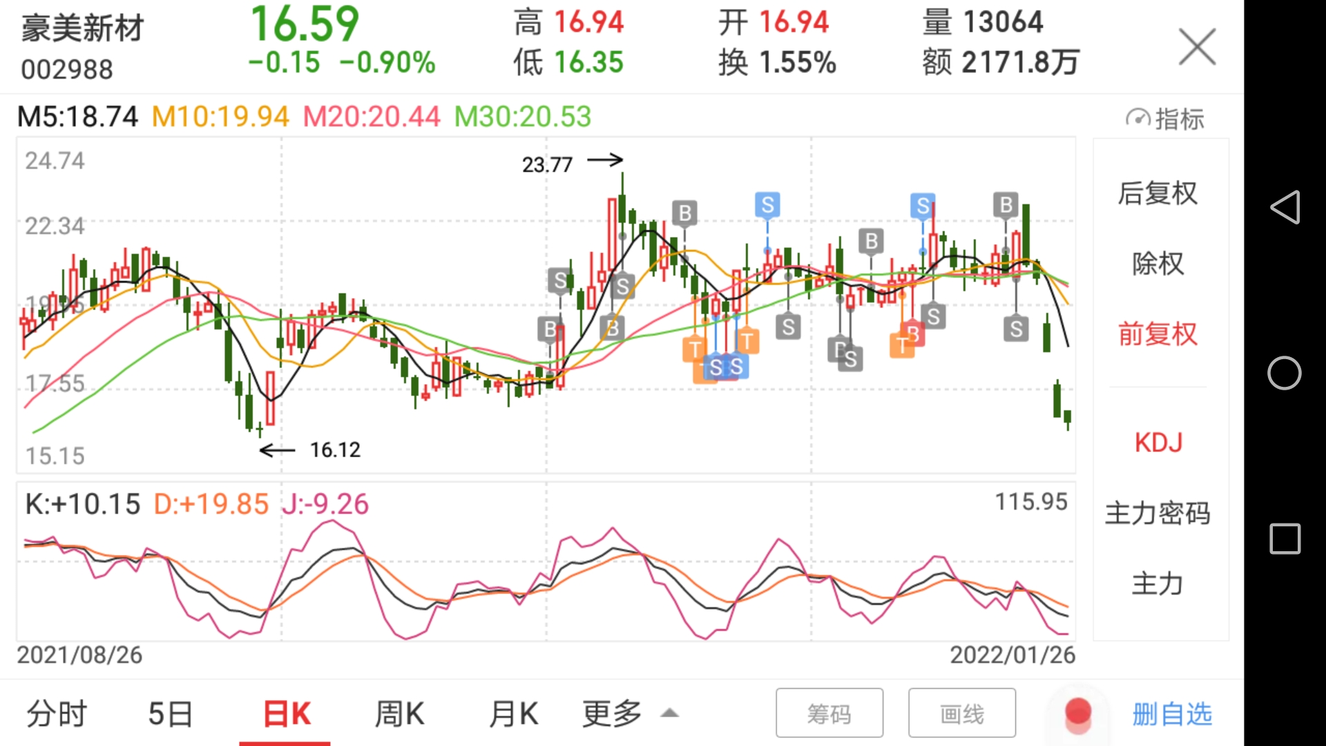 裕兴股份,买入16.83,卖出价16.93,获得0.5%;