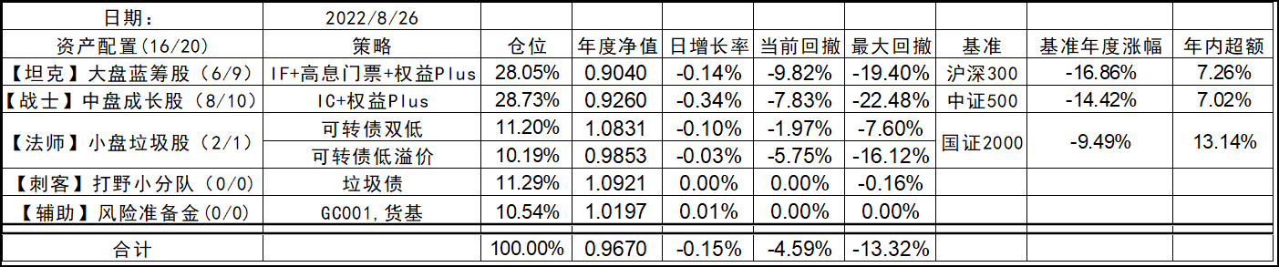 1. 【坦克】大盘蓝筹股:30%(沪深300 + 少量高股息率门票股)出门技能:IF 、权益+