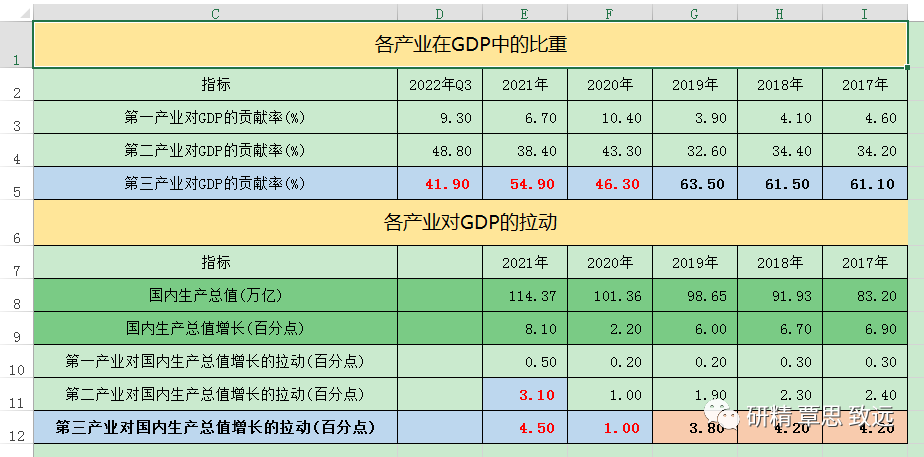 农业在经济中的占比一方面绝对值较小,另一方是相对稳定,我们绕过。而在即将到来的2023年,我们是拥有17/18/19年的第三产业增速呢?还是拥有20/21/22年的制造业增速?