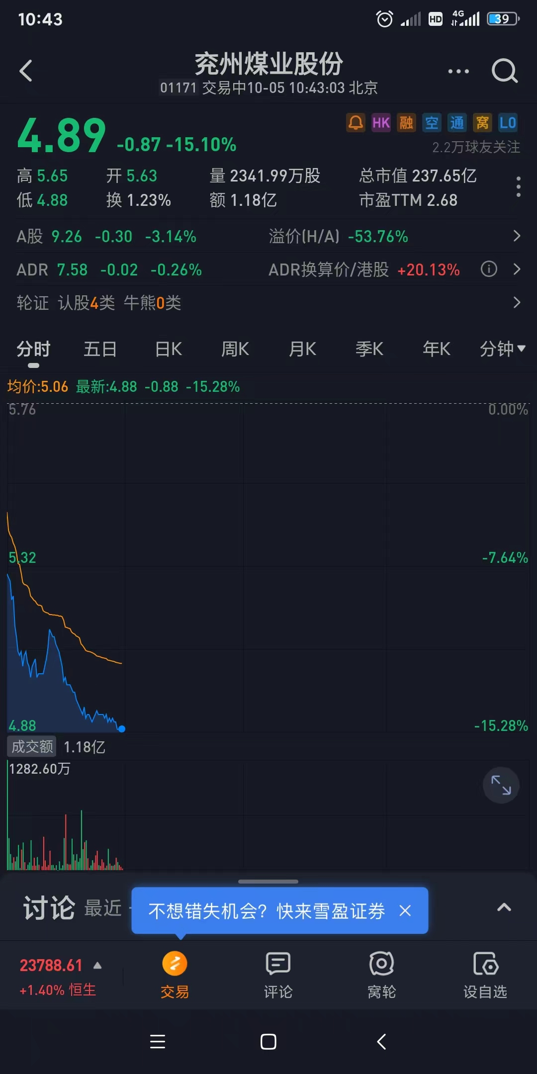 A股0.4PB,H股0.2PB,还配股。。。