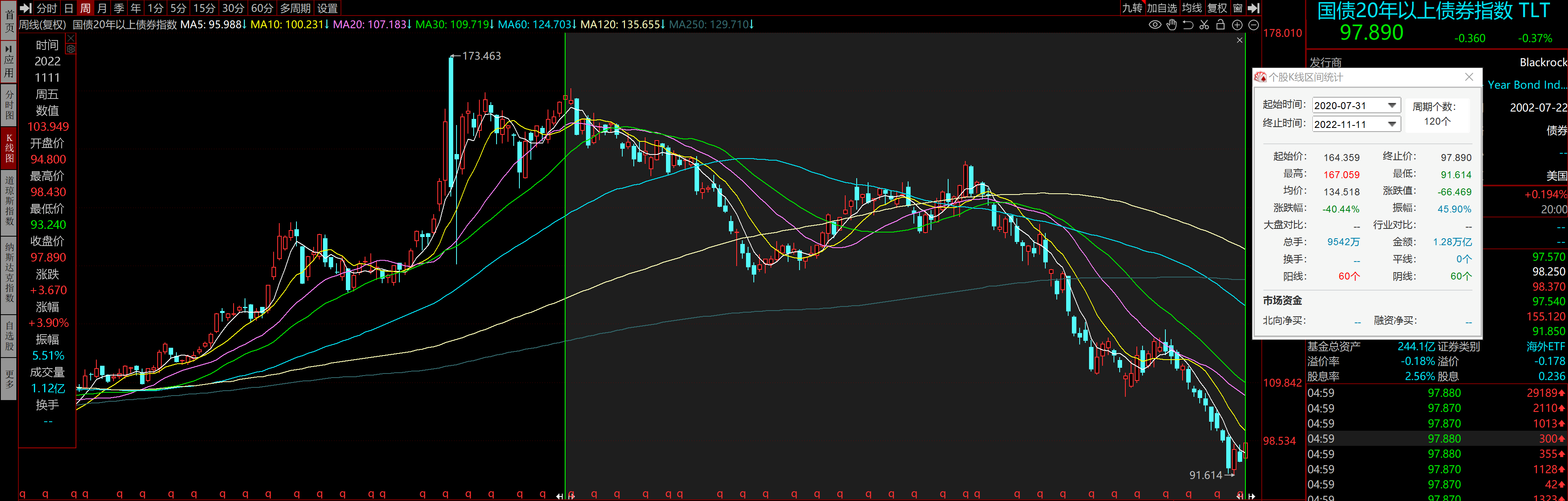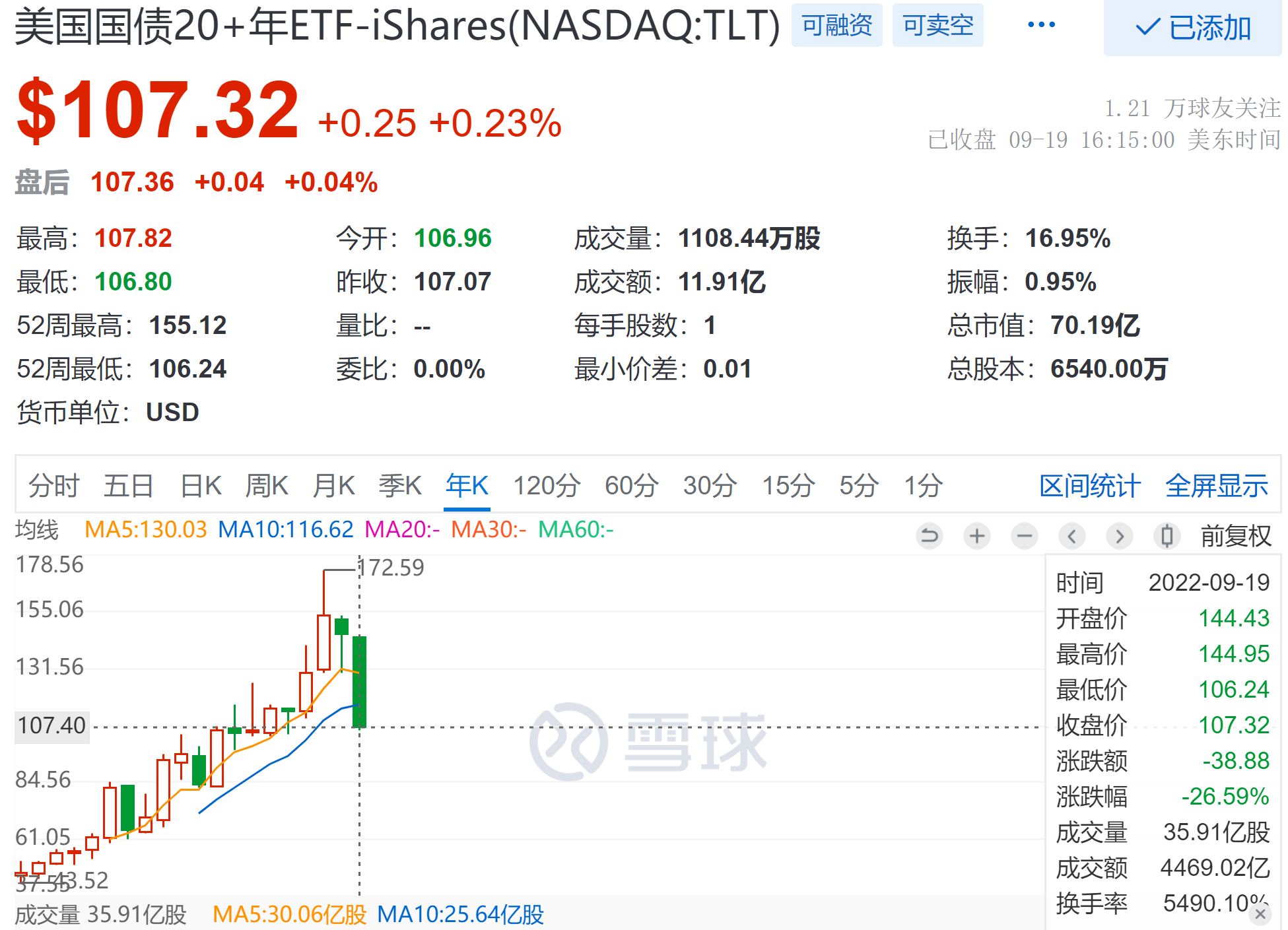 美元那部分还是2万亿,但是美债价格大跌,看一下美国长债基金的跌幅,今年-26%。