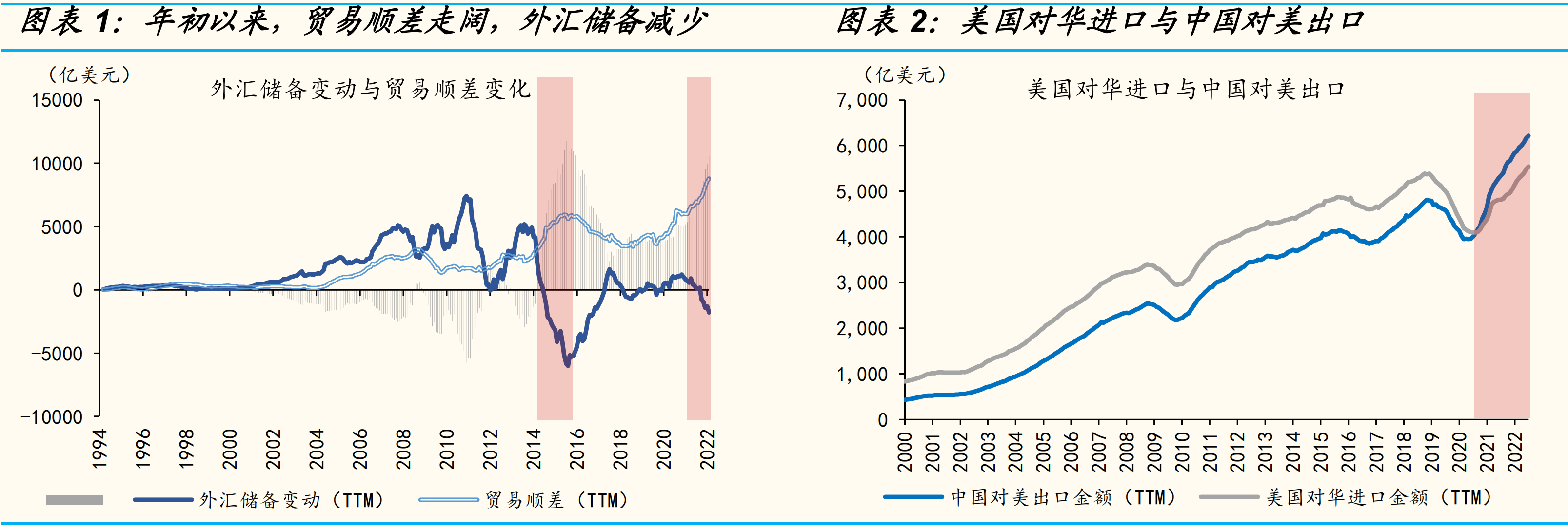 今年贸易顺差特别大,接近+10000亿美元,但外储-2000亿美元。