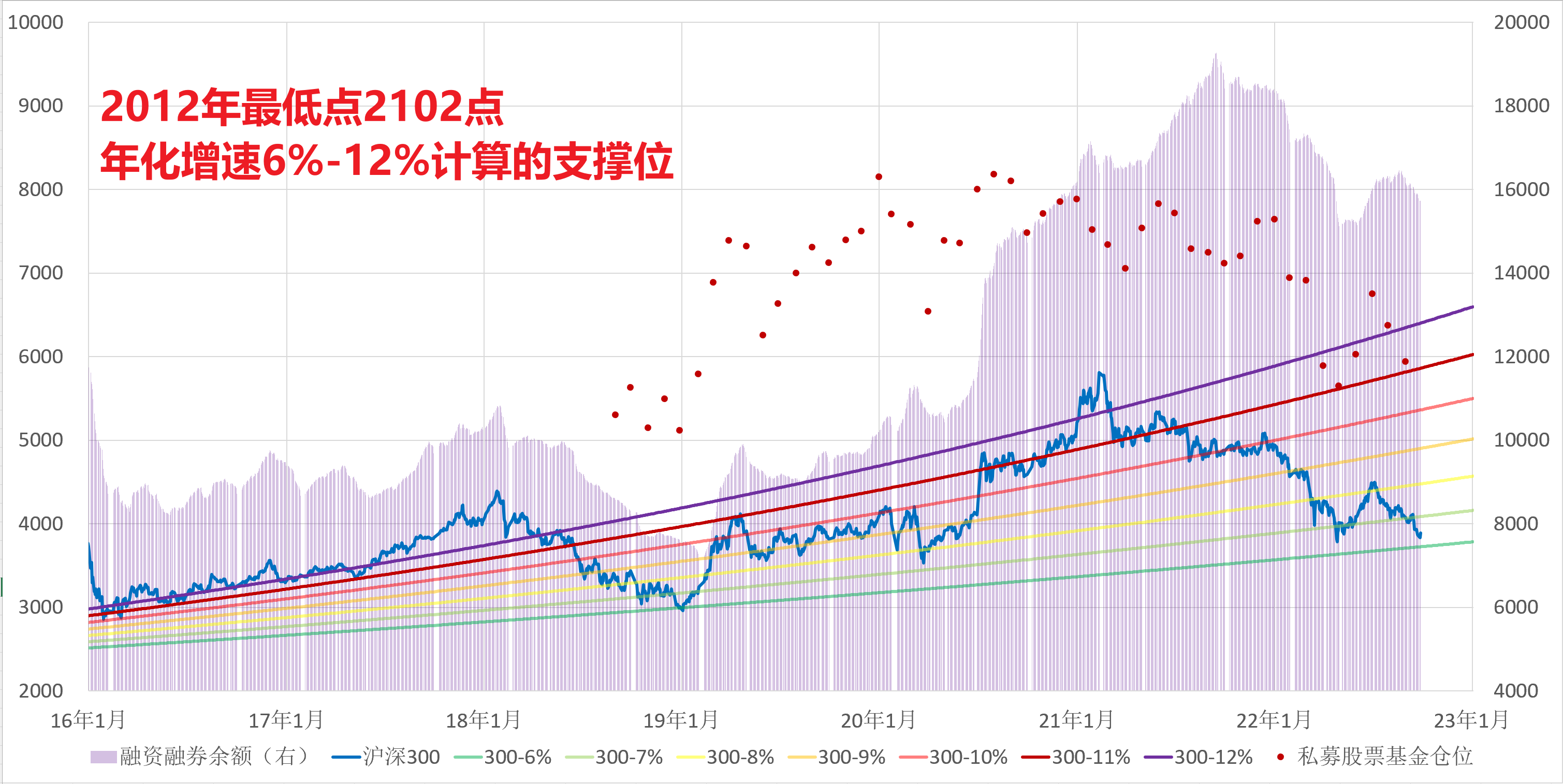 我用2012年低点2102点测算了300:6%增速对应是3730点;