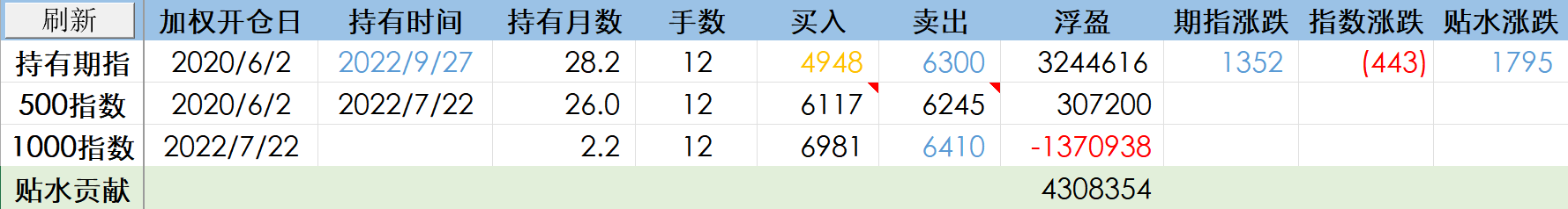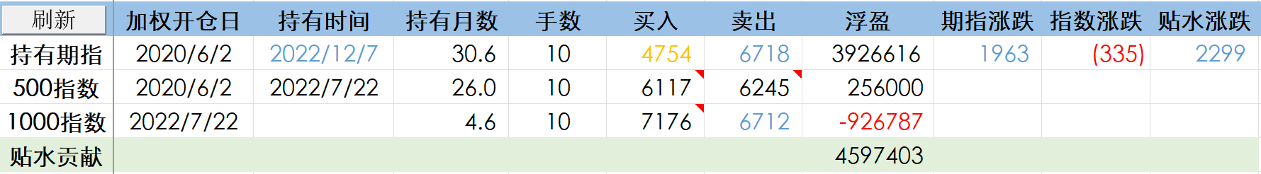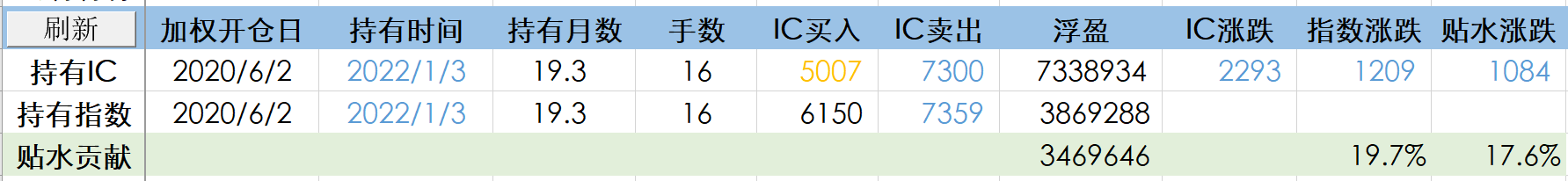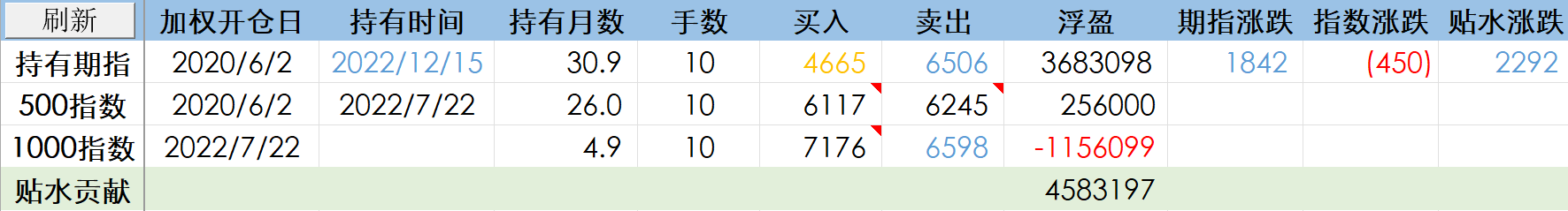 贴水吃了19.3个月有347万,总浮盈从222万涨到了733万,