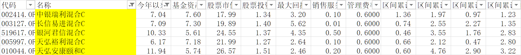 保证金部分,我考虑用固收+基金和C类基金轮动两个策略,都选5个。