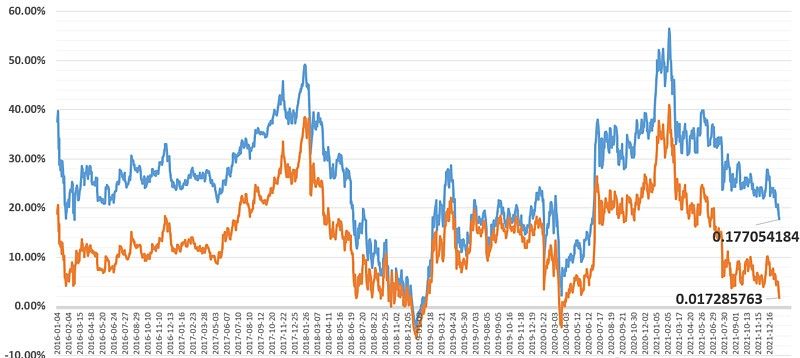 先说中证500对应波动率 2003.2012.2017这波动最小三年,后面一年都是大幅波动下跌的。