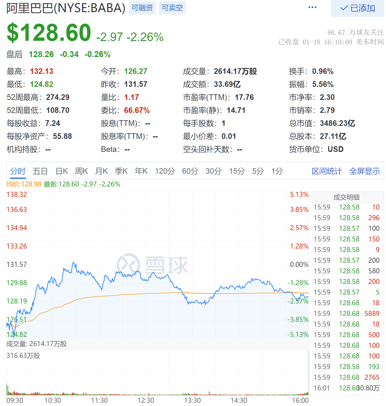 昨晚阿里财报拉胯,开盘跌5%,加上纳指大跌,