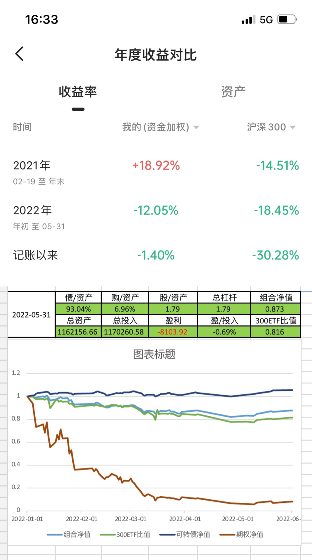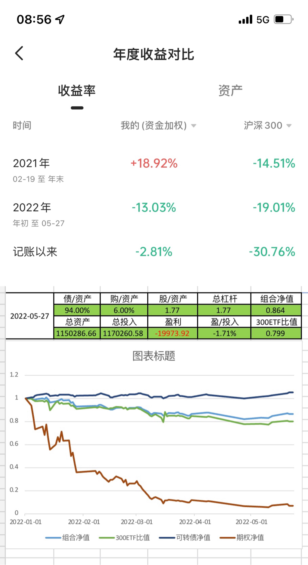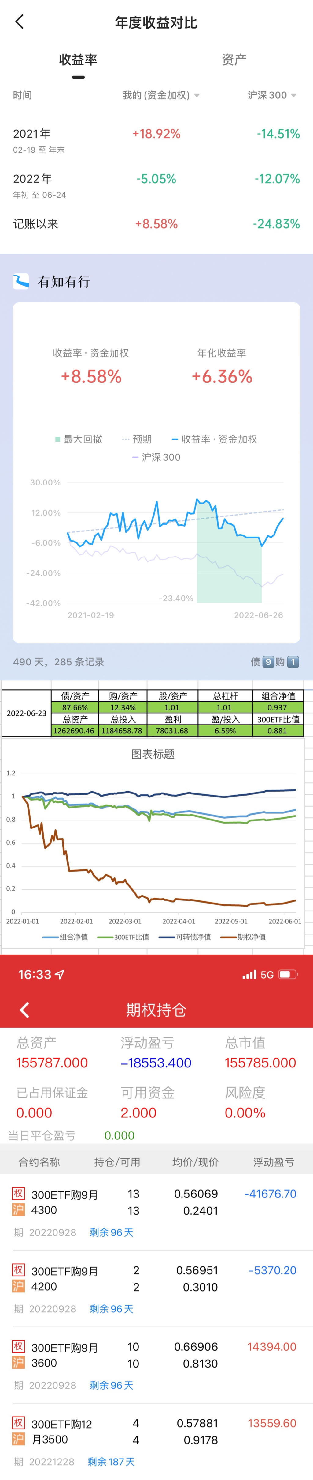 表格增加期权和可转债的净值。继续用有知有行app统计收益率。