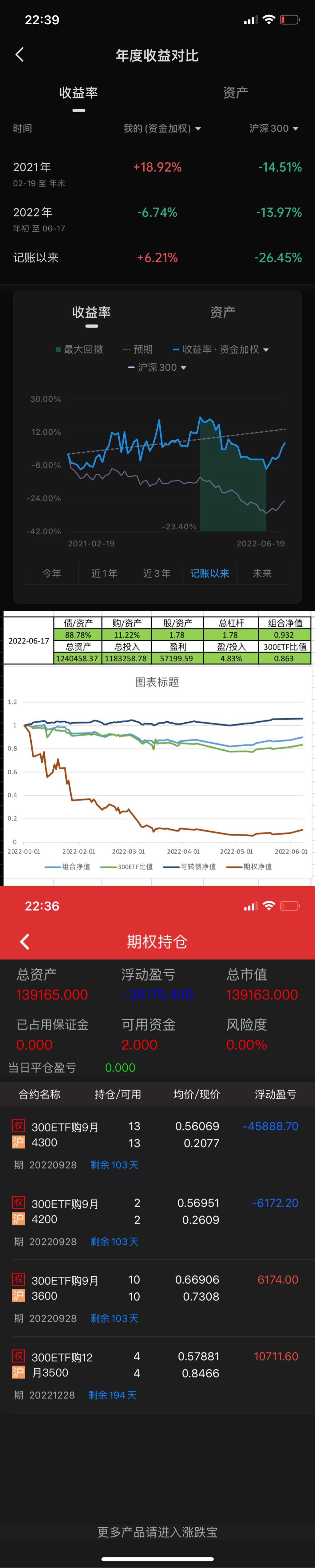 看来9债1购大有搞头,1.78倍情况下亏损只有6%,指数亏损的一半,结合底部加仓,再平衡等操作,应该好于回测结果,另外有集友也差不多3%的亏损,最大亏损7%左右,买购达到14%比重,还有·一个集友今年已经盈利了,靠底部换成股指期货和债端获利,毛估估指数回到年初的话,盈利大概在10%左右。