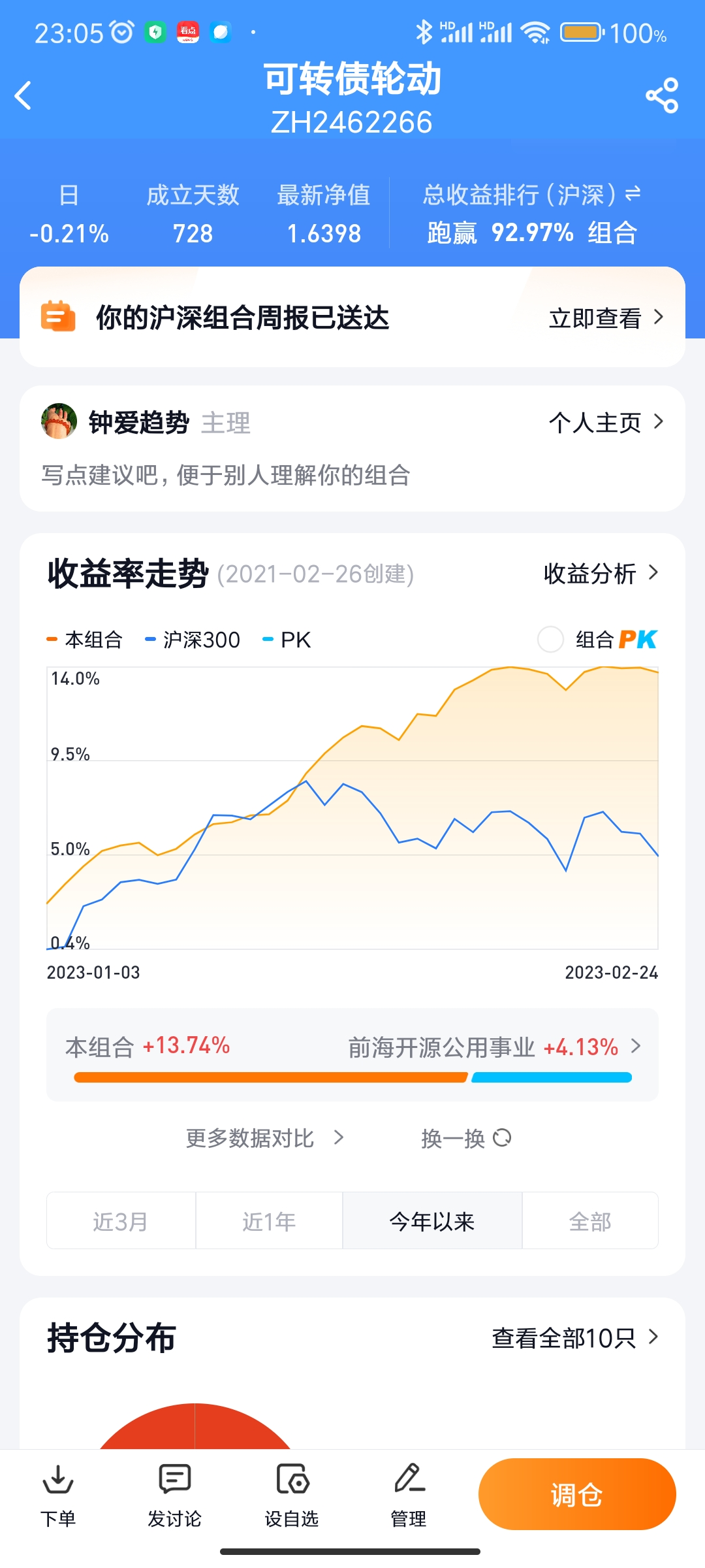 本周清仓了部分股票及红利etf,不断加仓调仓可转债,但收盘后看仓位仍为八成,可转债4成,股票及ETF3.5成,现金2.5成,可转债距离计划中的可转债7成仓位仍有相当距离。