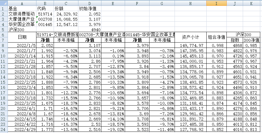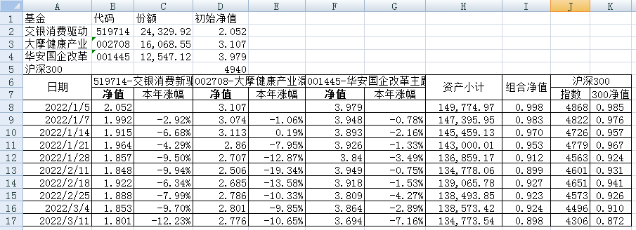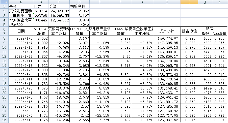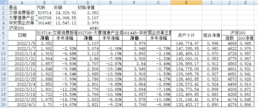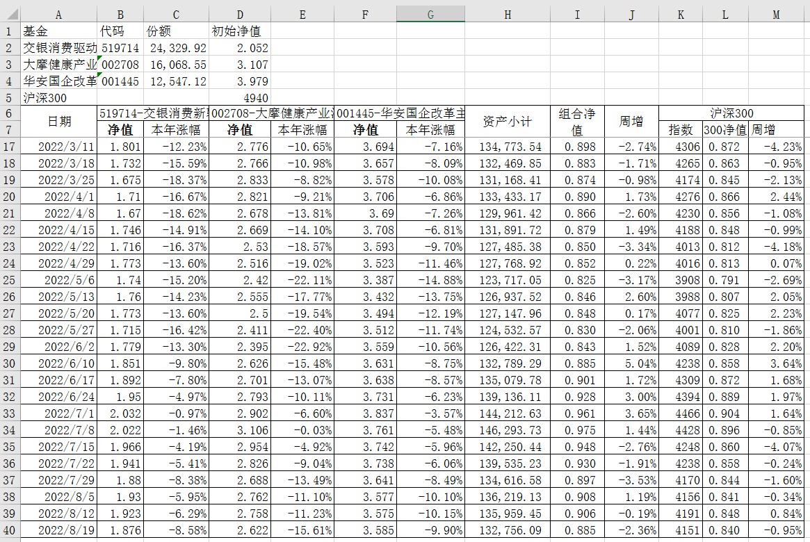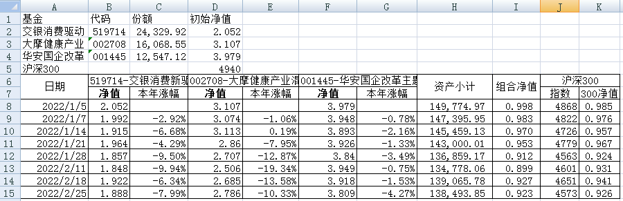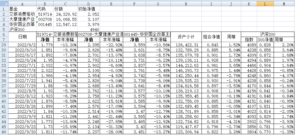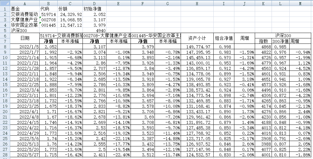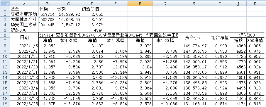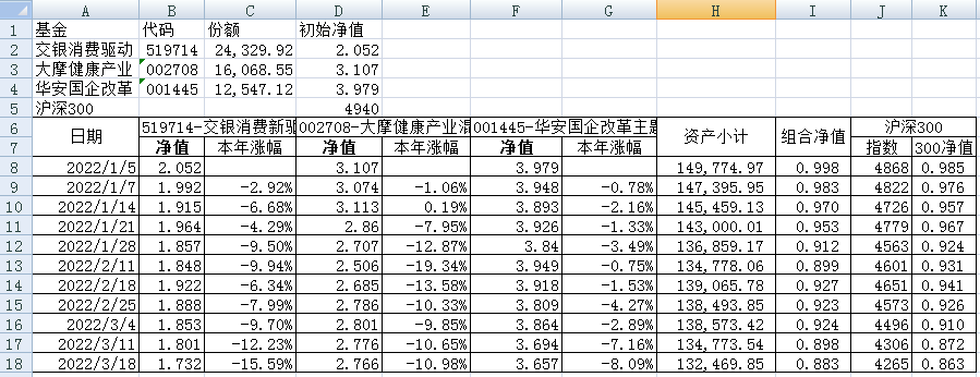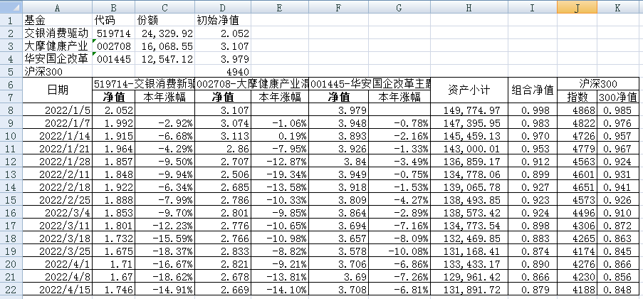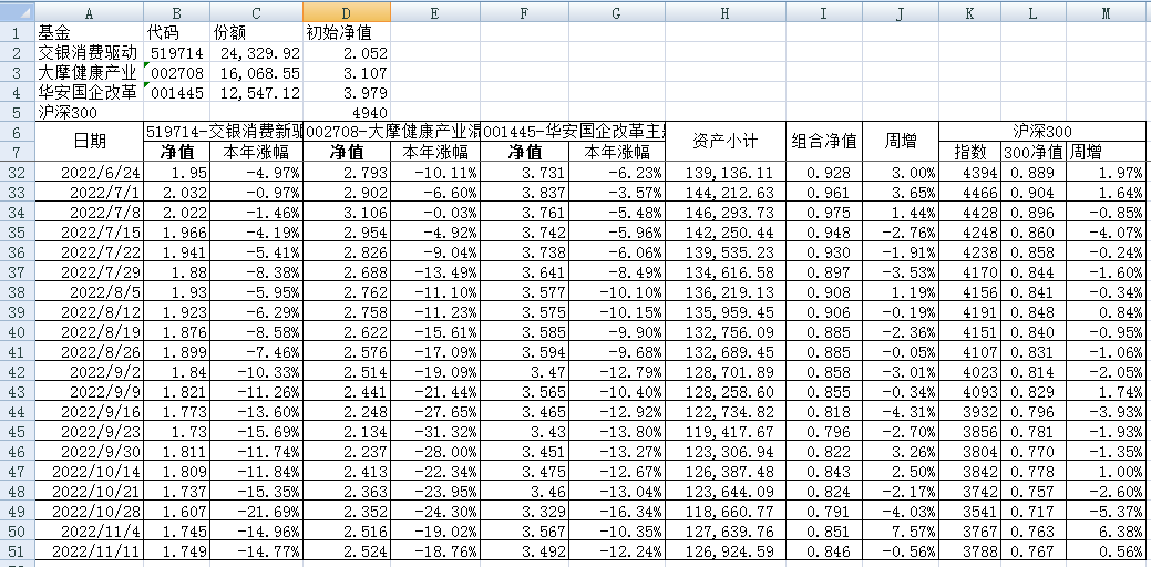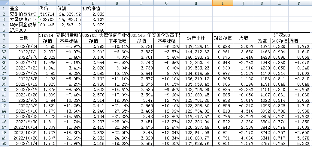 最近看了集友“账户已注销”的文章《正所谓乱拳打死老师傅》。他认为消费、医疗健康、科技、高端制造四个行业是好赛道,受其启发,本周建立了组合2。由交银消费新驱动、大摩健康产业混合、华安国企改革主题3只基金组成,前面2只基金是消费、医疗健康赛道,第3只基金有一些变化,我个人认为国企改革在2022年应该也是一个比较好的赛道。