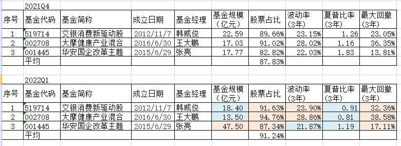交银消费新驱动、大摩健康的规模、夏普比率下降,股票占比、波动率加大,基金经理操作正常。