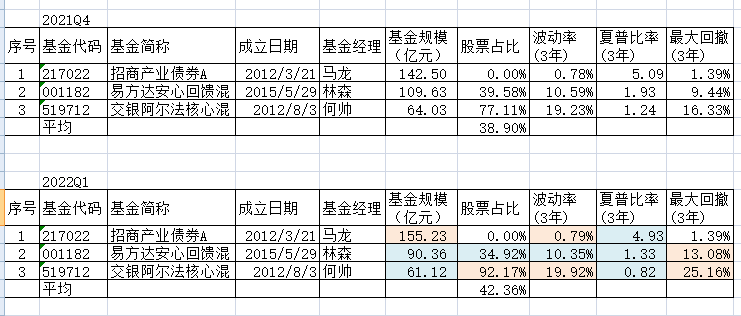 基金2022年一季报出来了,组合1和组合2情况如下。