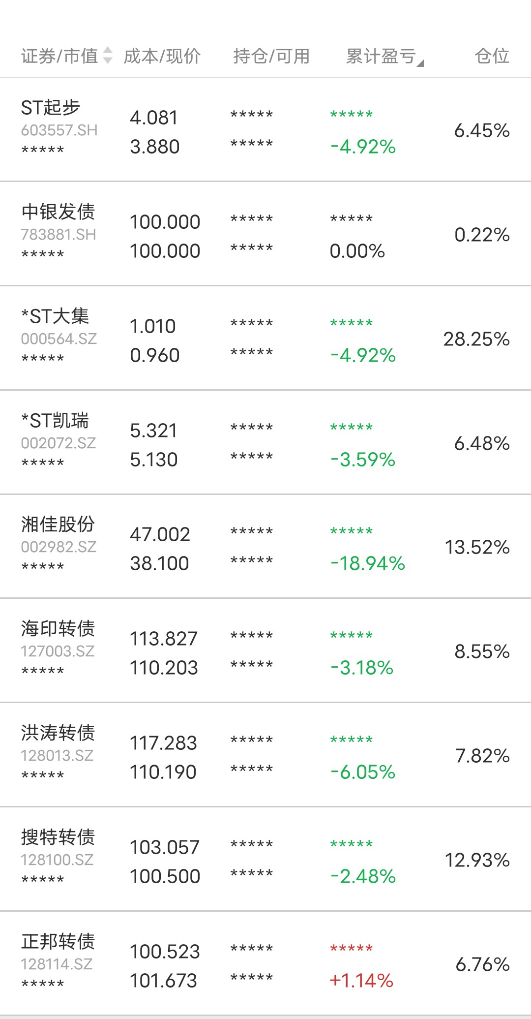 华宝周末总是测试不能看持仓,简单说下,本周大集减仓一半,其他未变,st股告一段落。