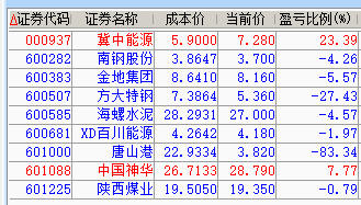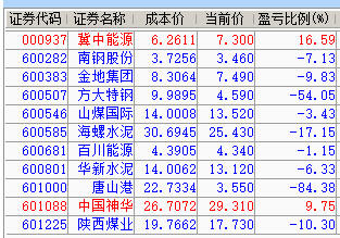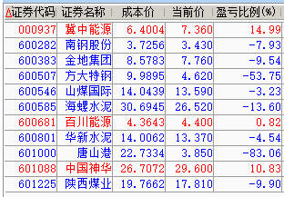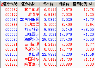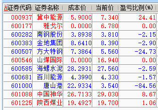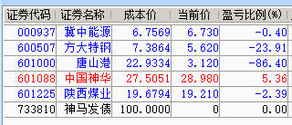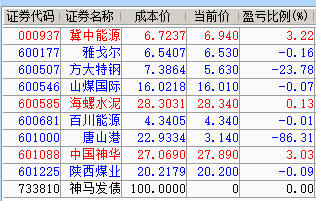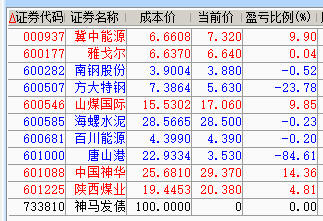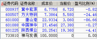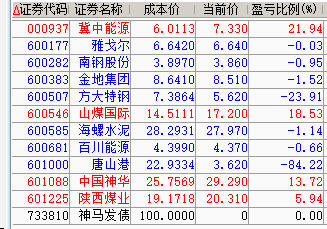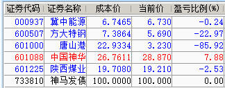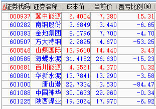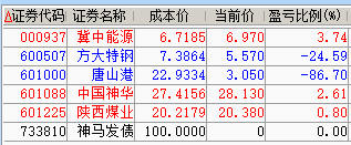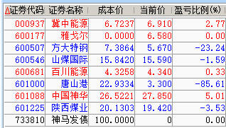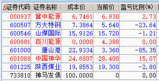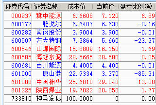 减仓百川、神华、陕煤;