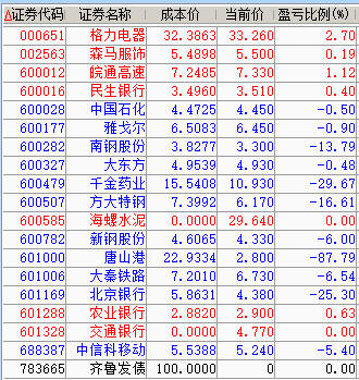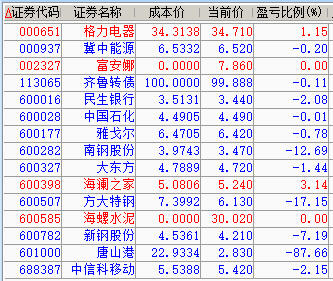 20230220 清仓格力、齐鲁转债,格力卖飞,齐鲁亏了十几块,用十万块钱去救它,差点栽进去,赚了1.54元全身而退。 减仓冀能; 加仓格力、民生、雅戈、神华、信科; 开仓海澜、京行。 迄今为止,账户年度涨幅8.13%,跑赢大盘1.62%。
