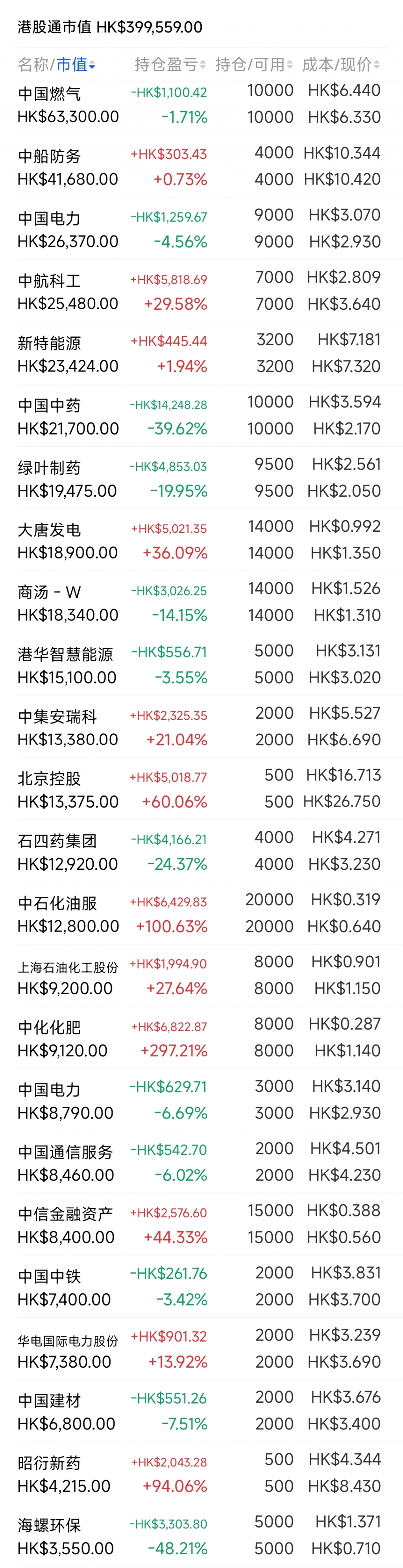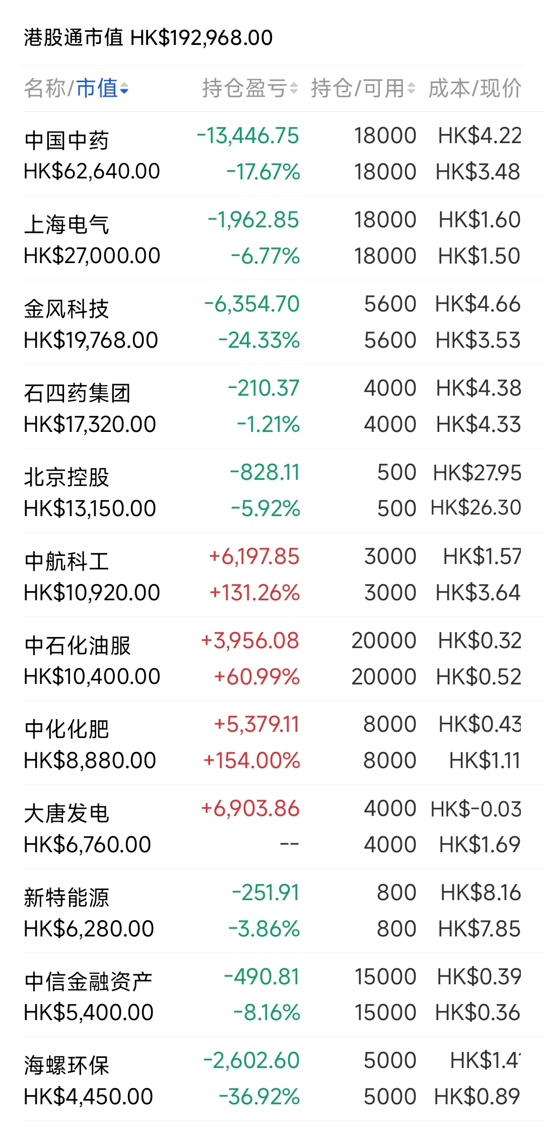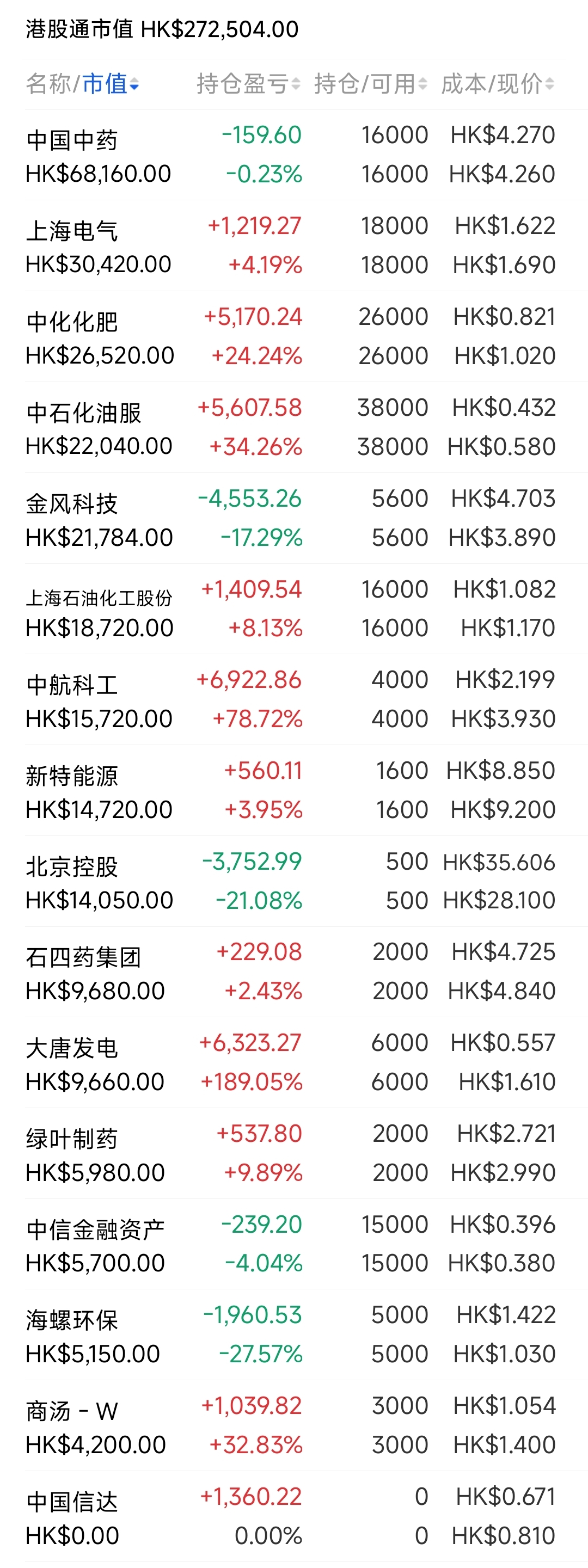 2021年12月觉得港股跌得差不多了,陆续投入部分资金分别摊些大饼,