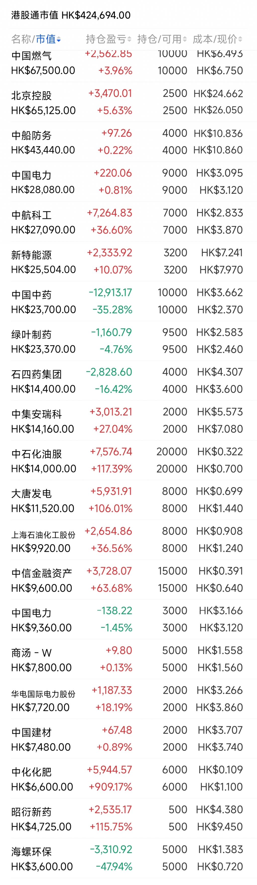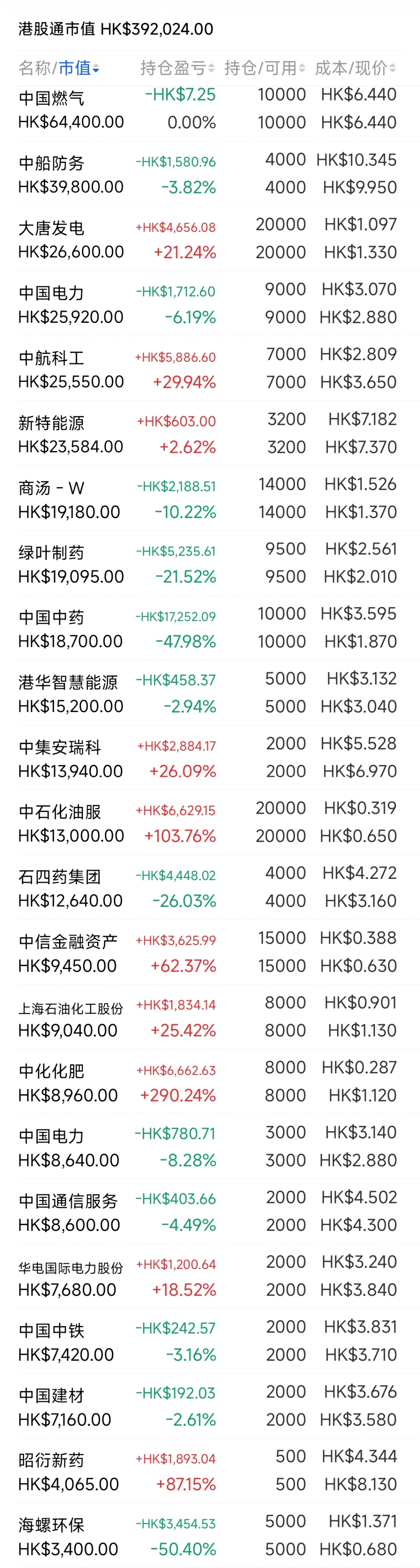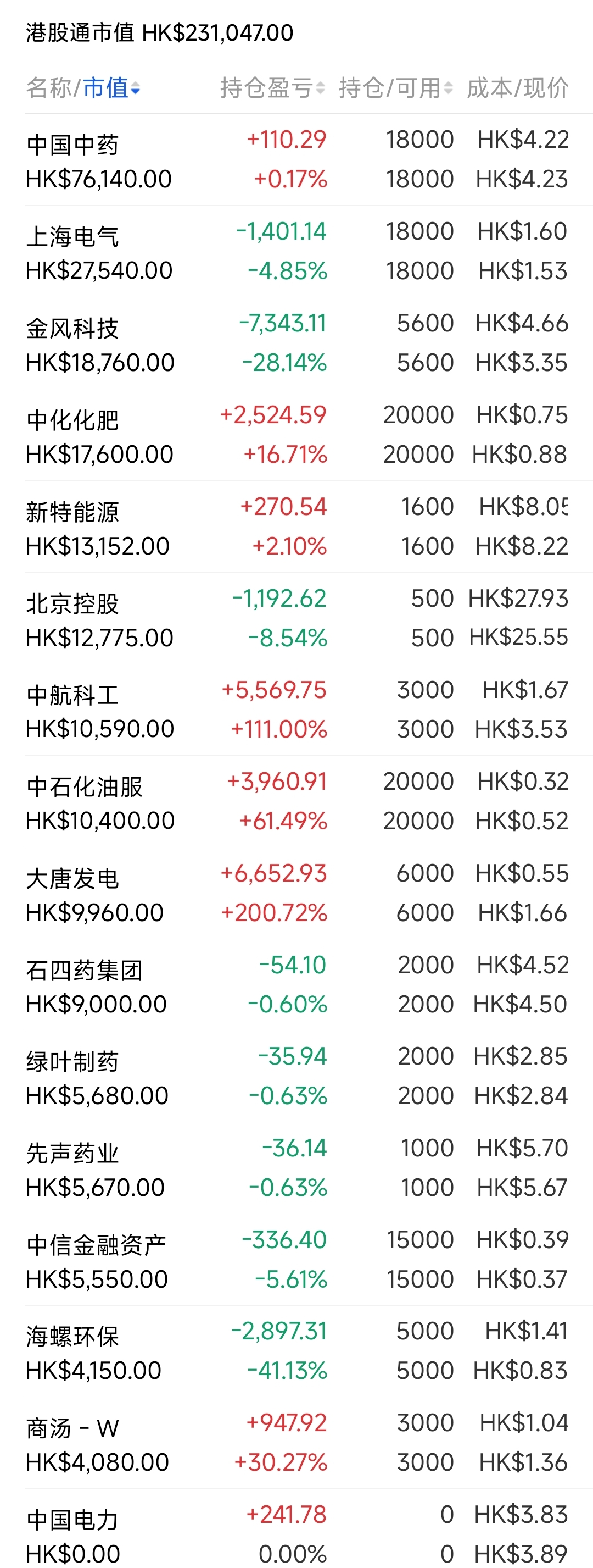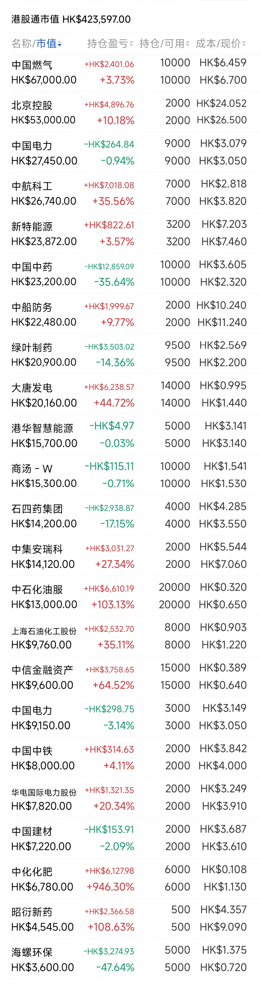 2021年12月觉得港股跌得差不多了,陆续投入部分资金分别摊些大饼,