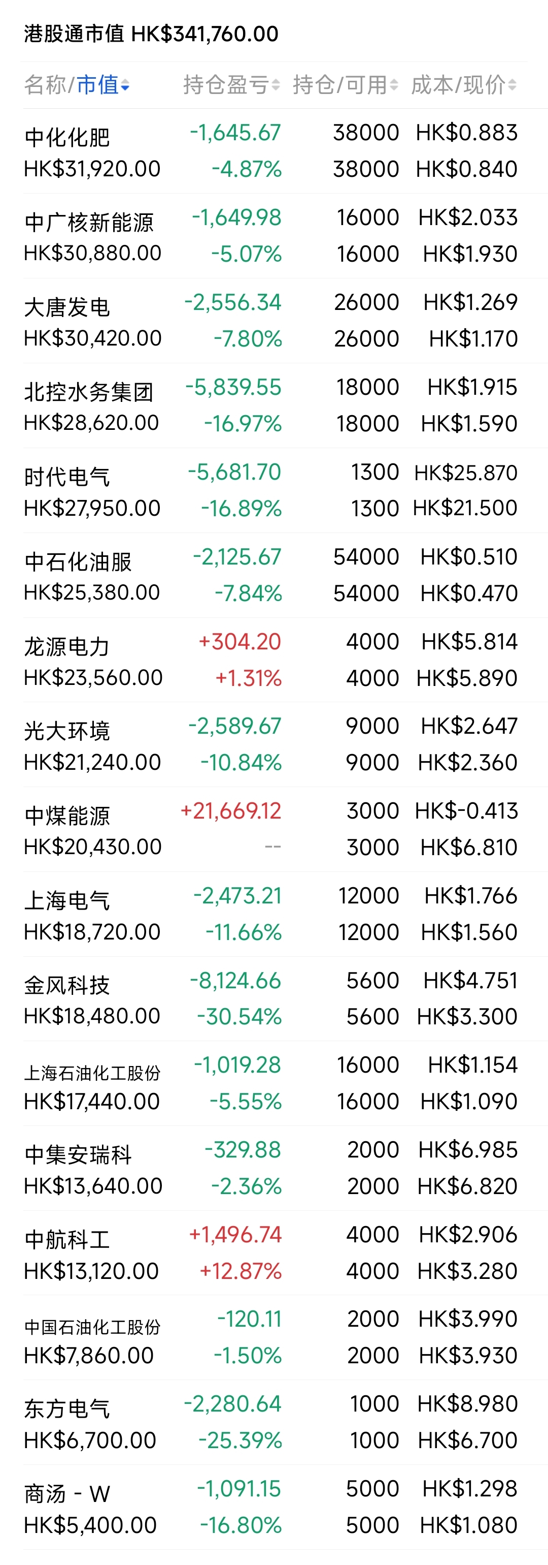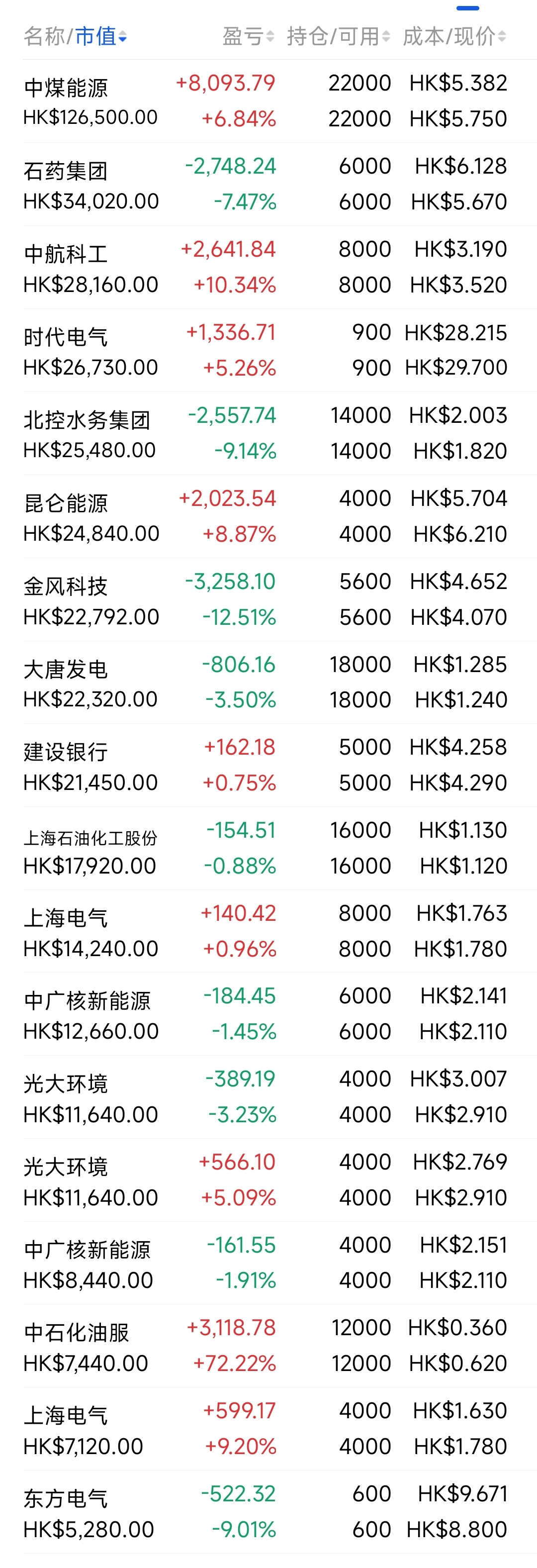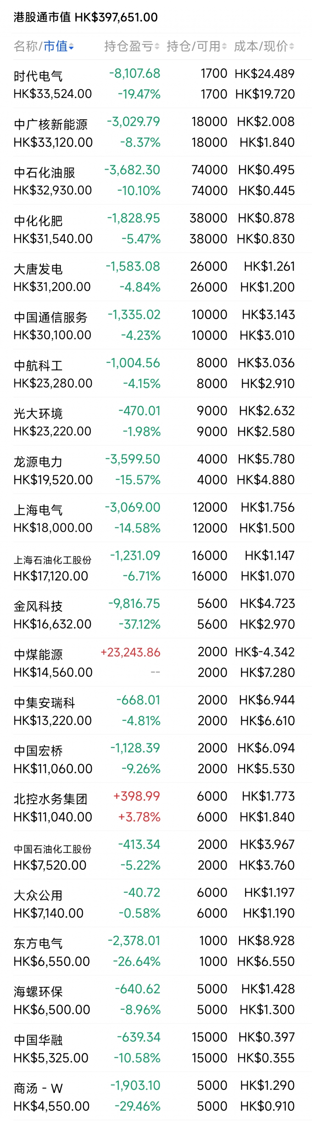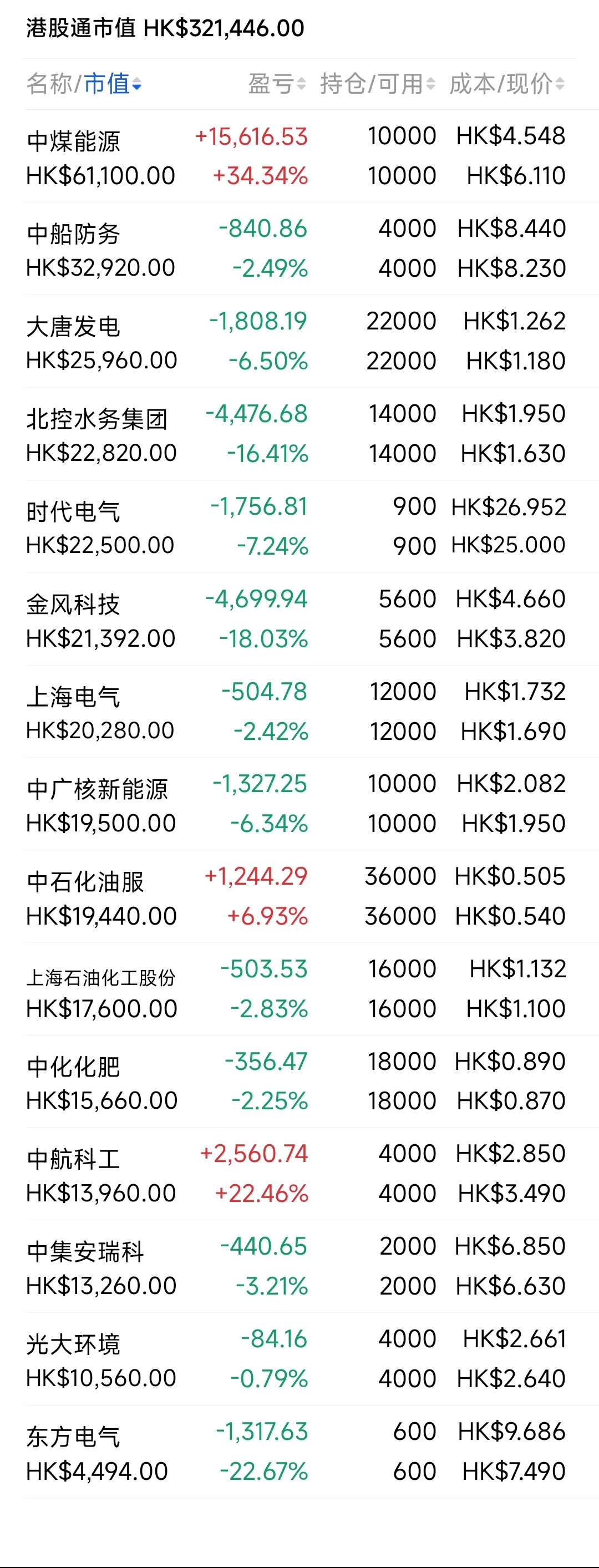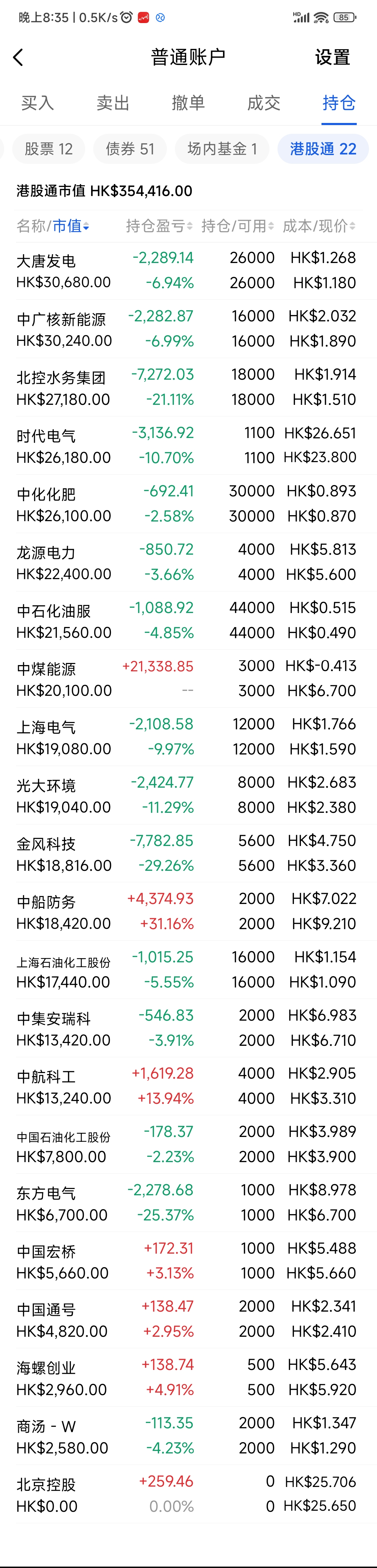 2021年12月觉得港股跌得差不多了,陆续投入部分资金分别摊些大饼,