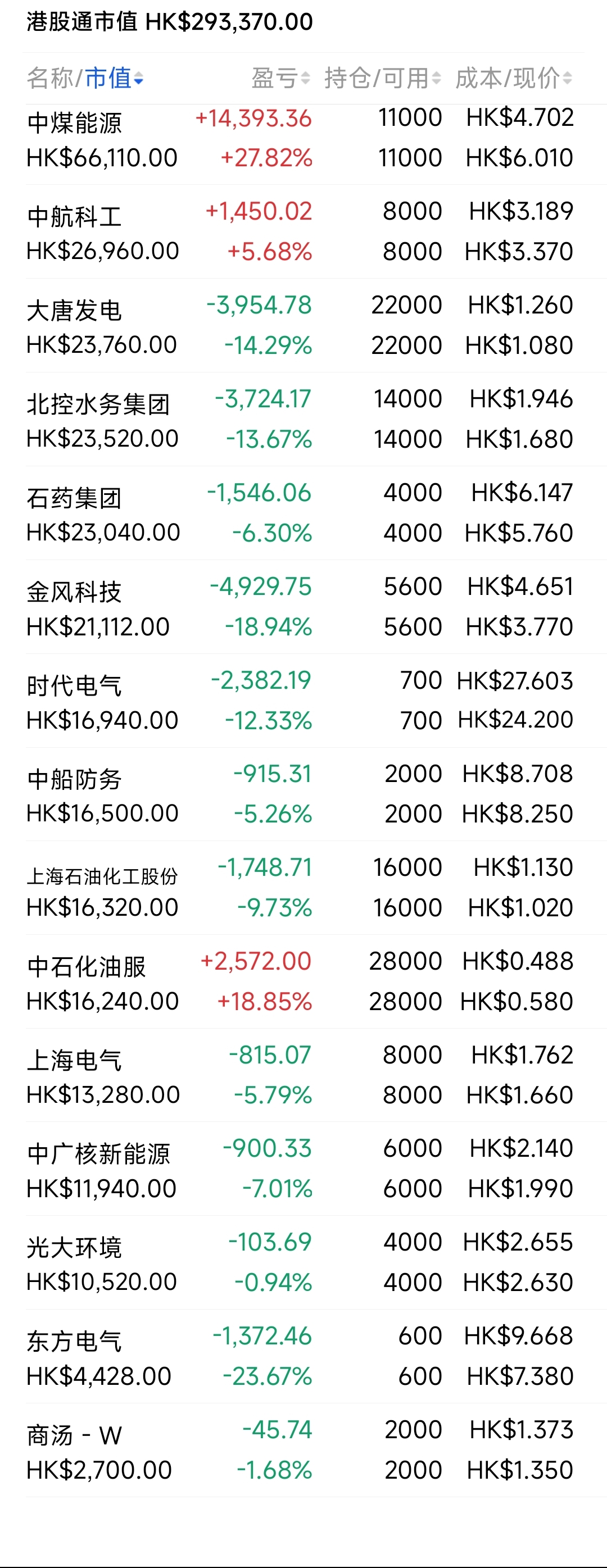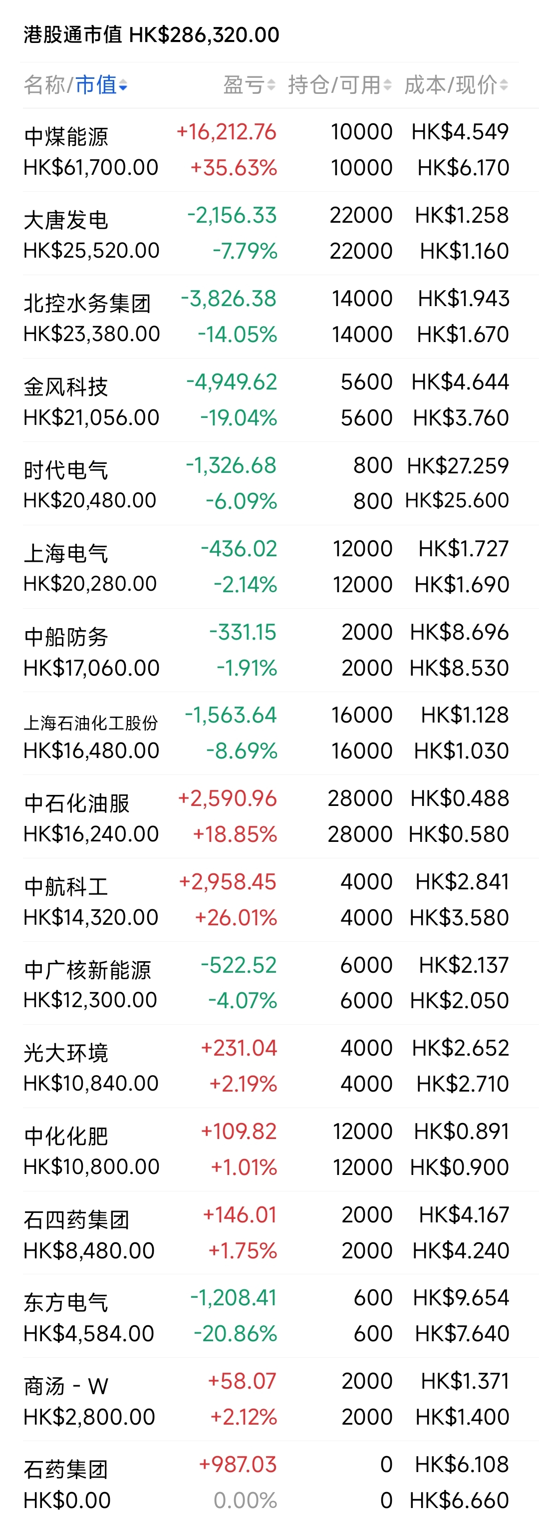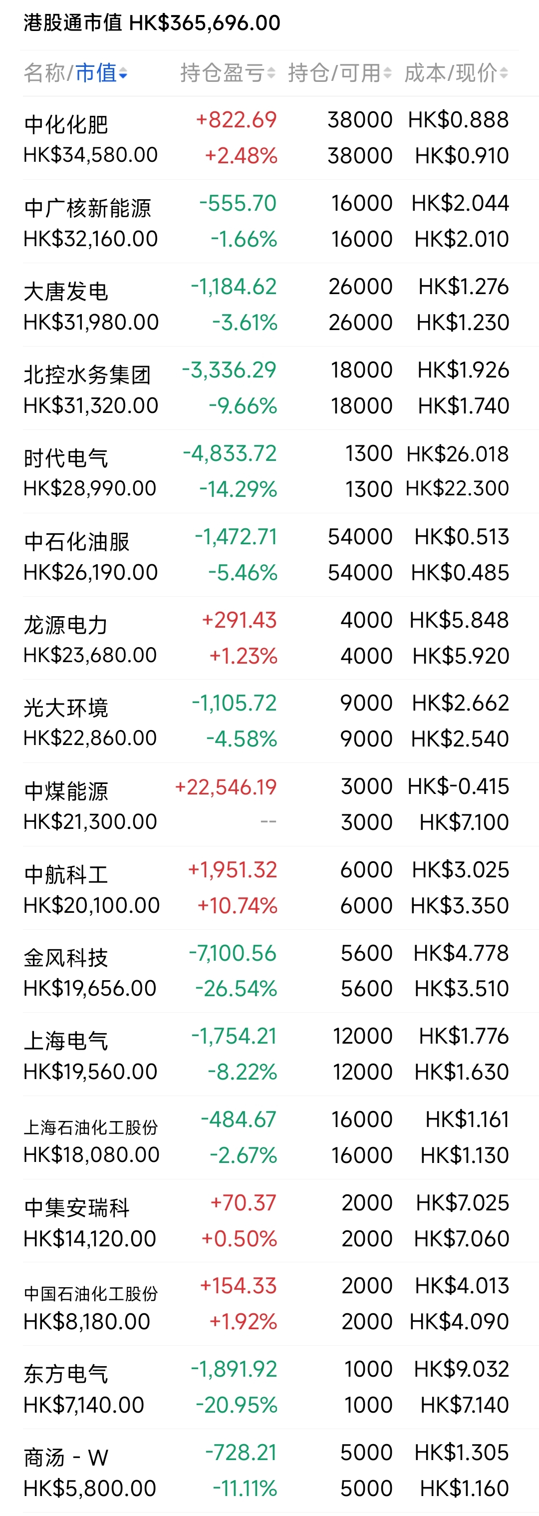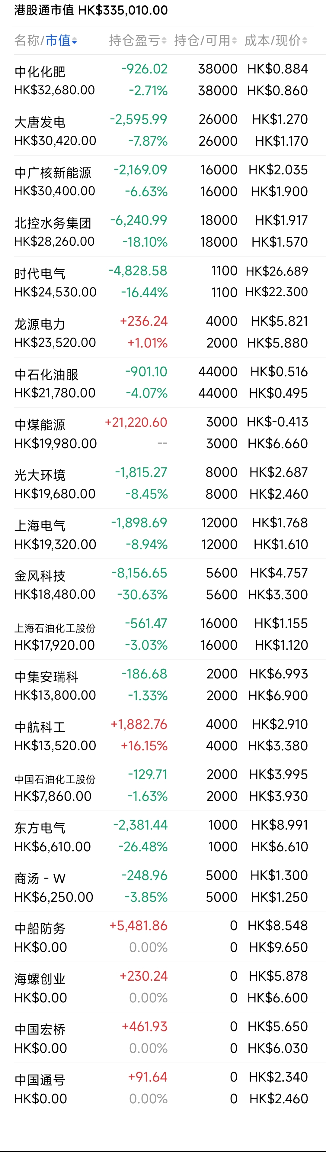 2021年12月觉得港股跌得差不多了,陆续投入部分资金分别摊些大饼,