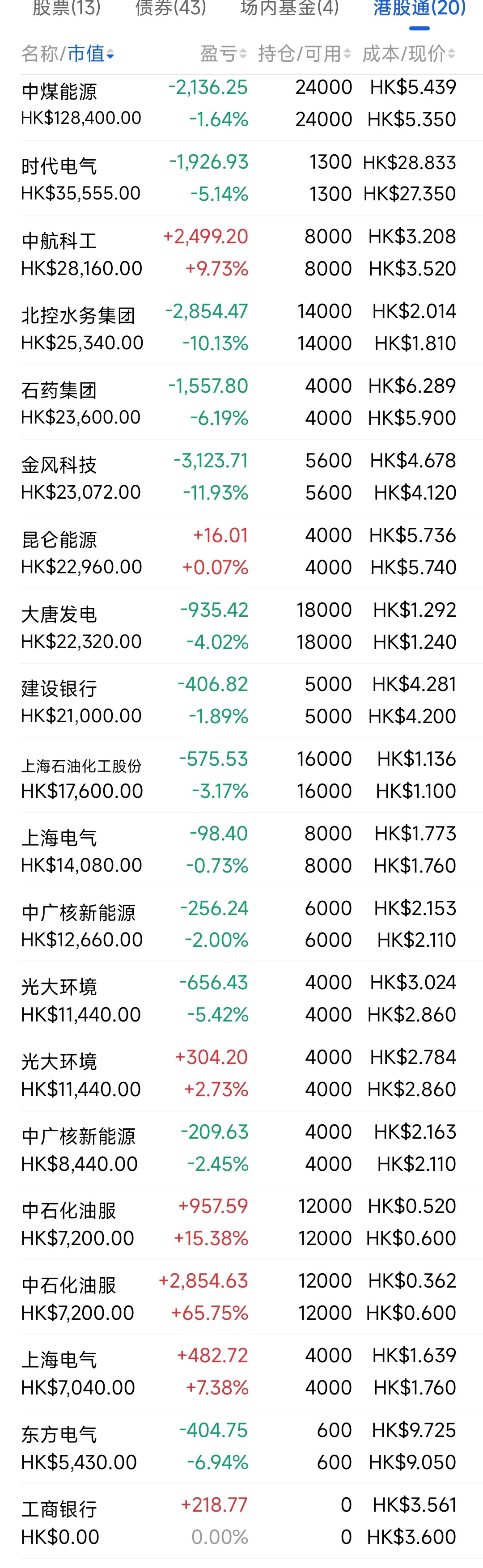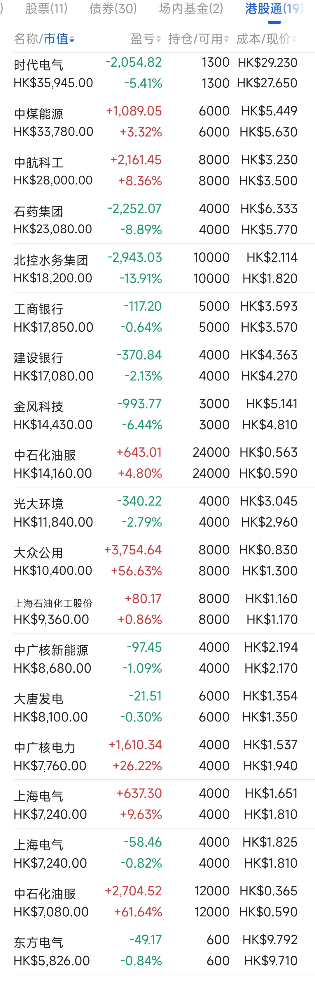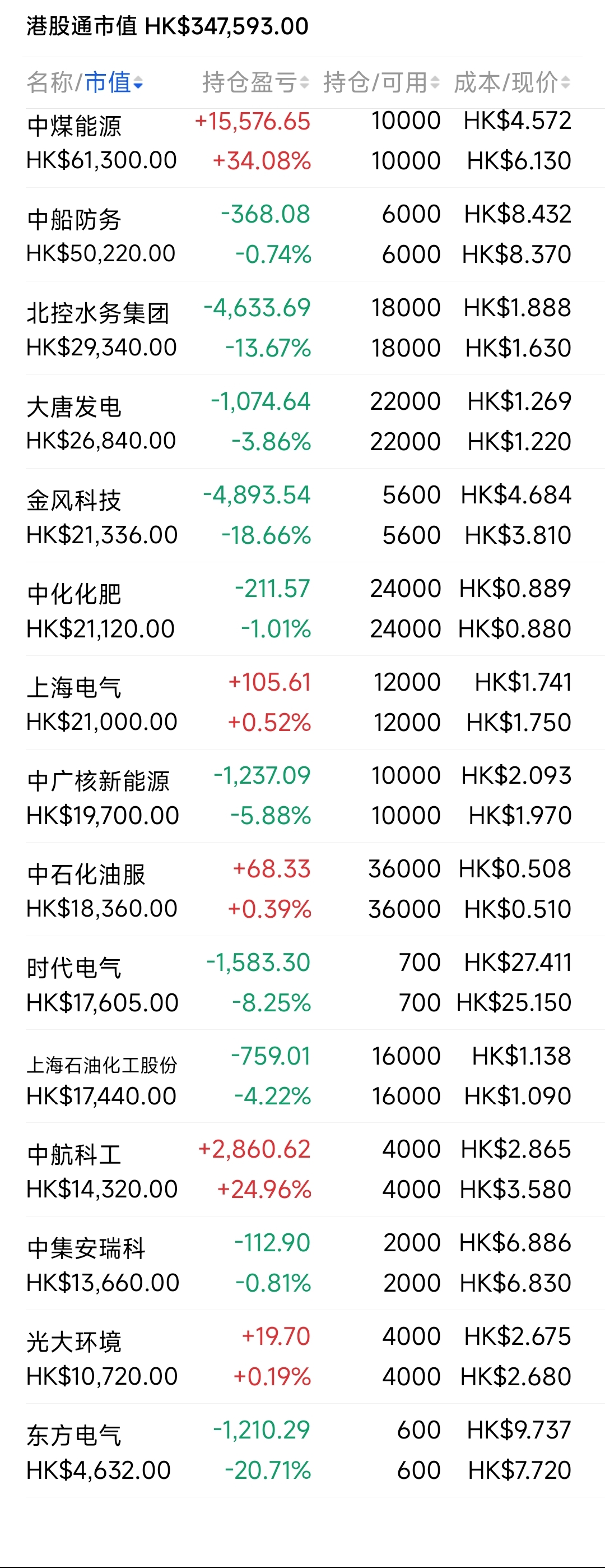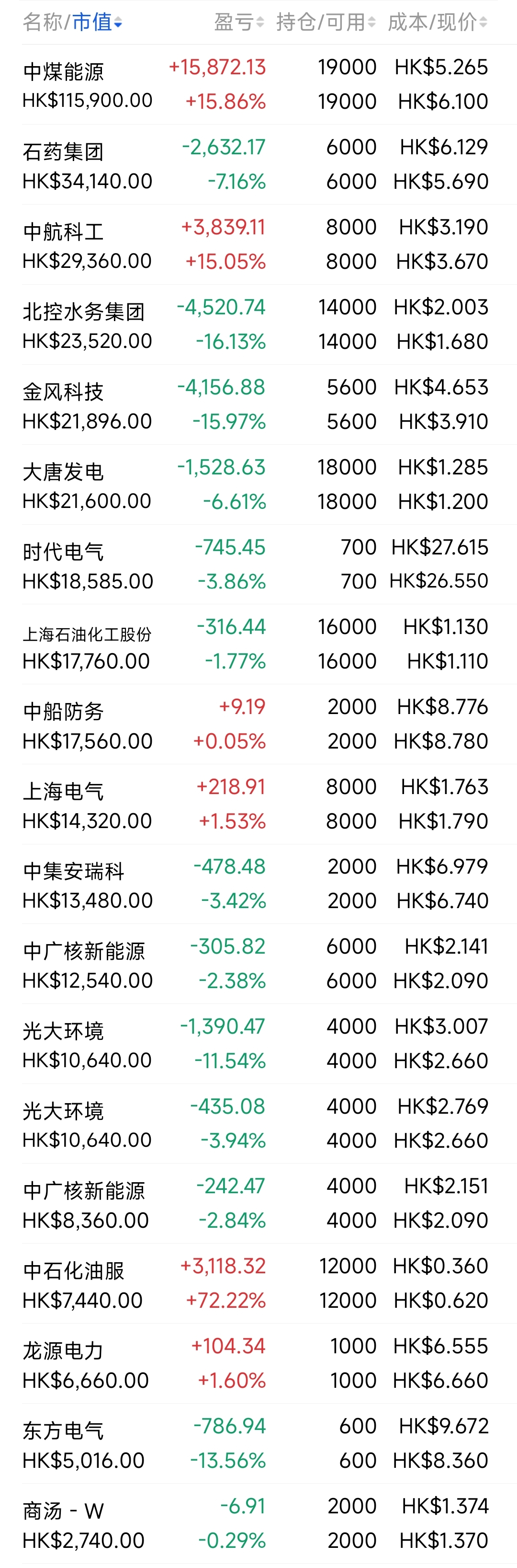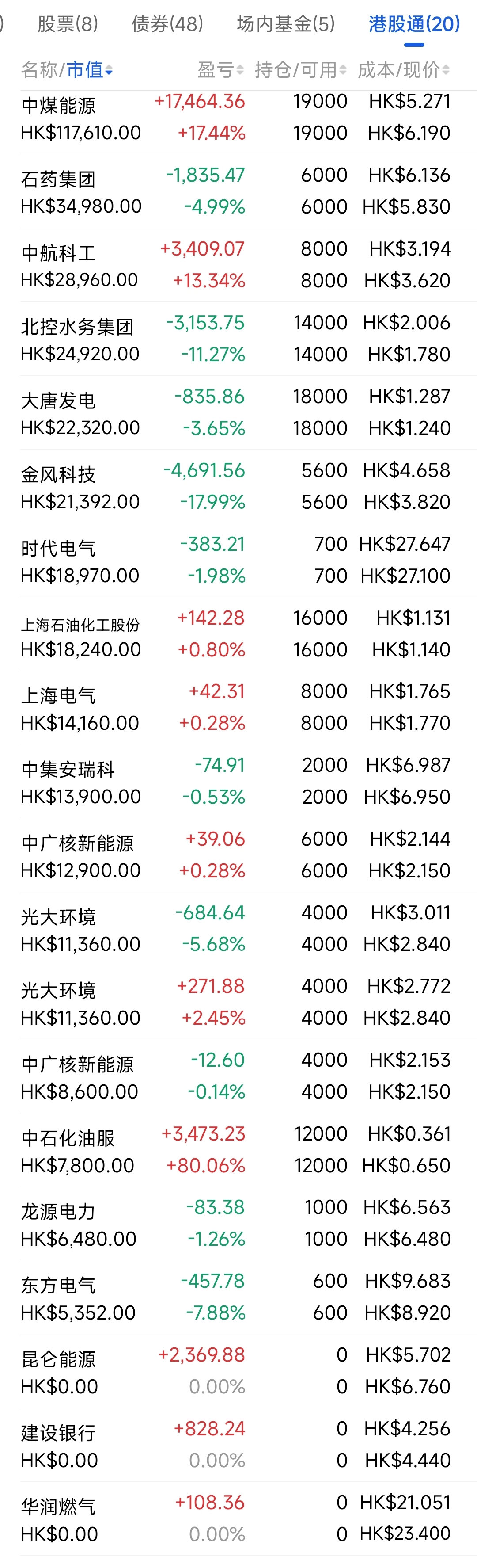2021年12月觉得港股跌得差不多了,陆续投入部分资金分别摊些大饼,