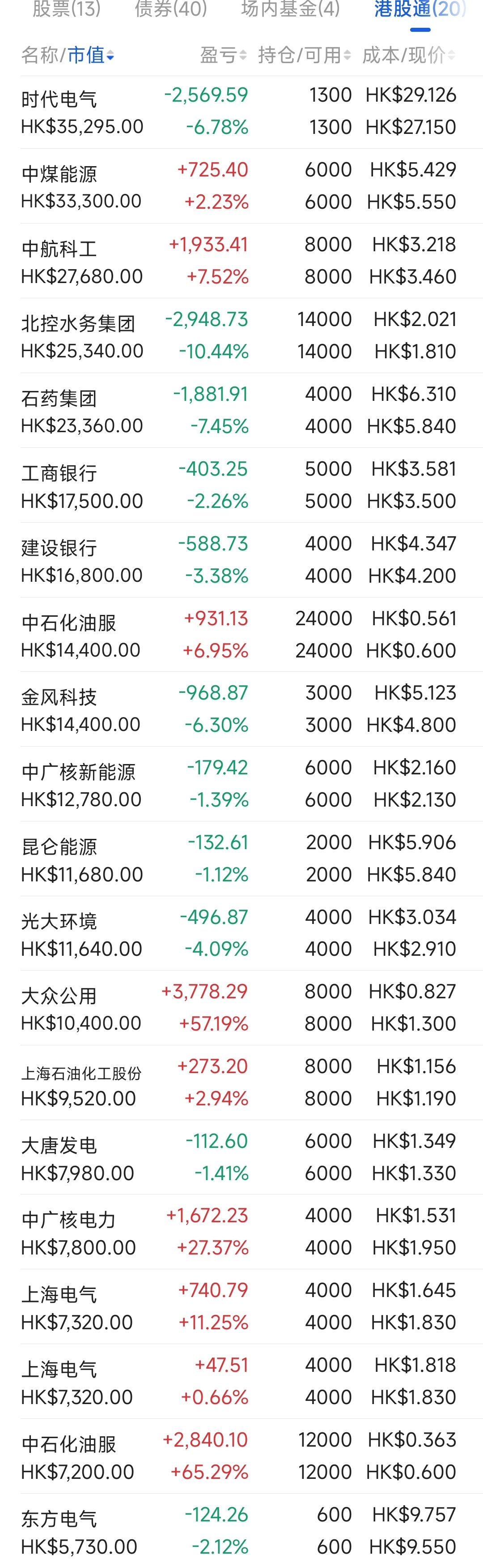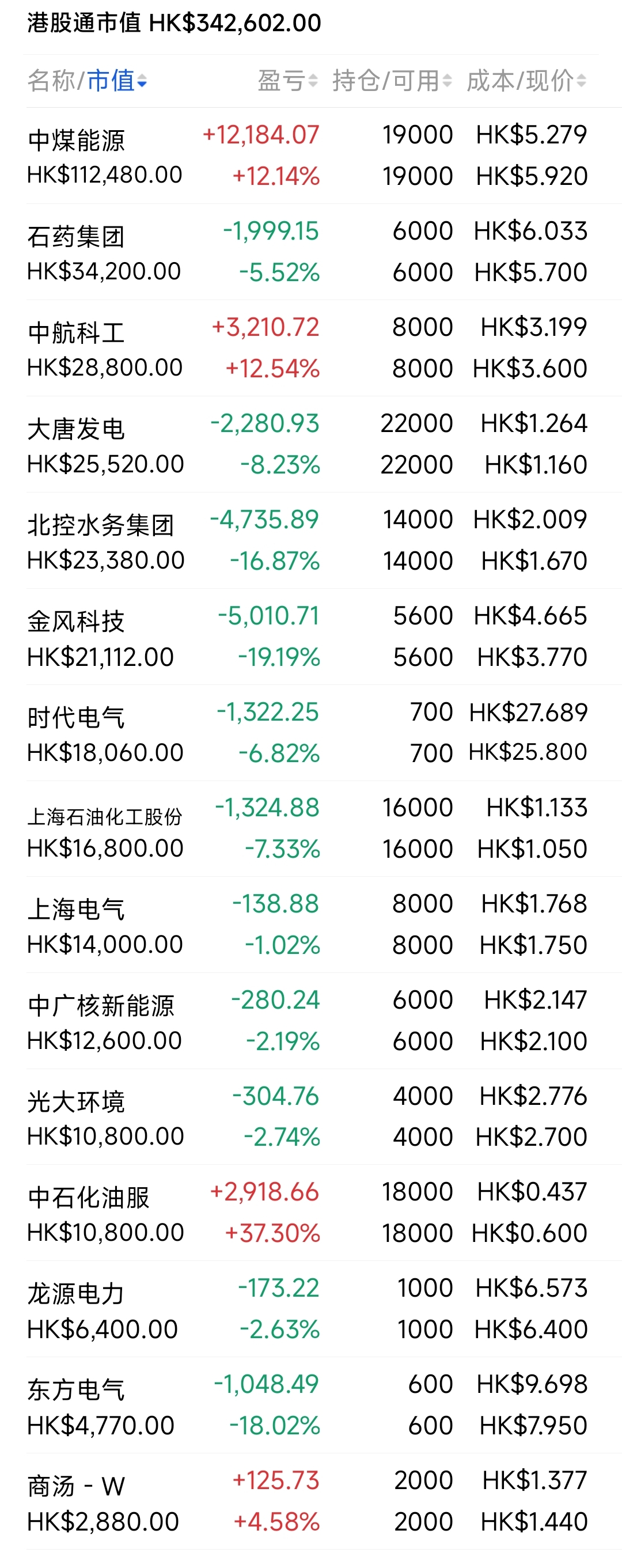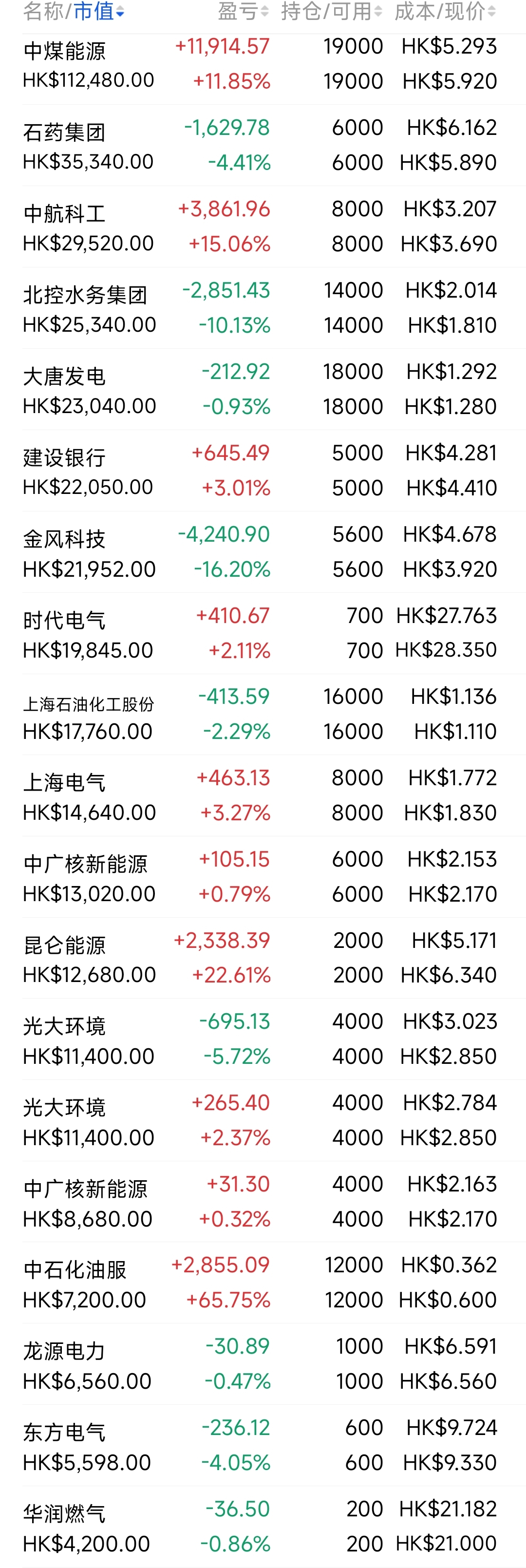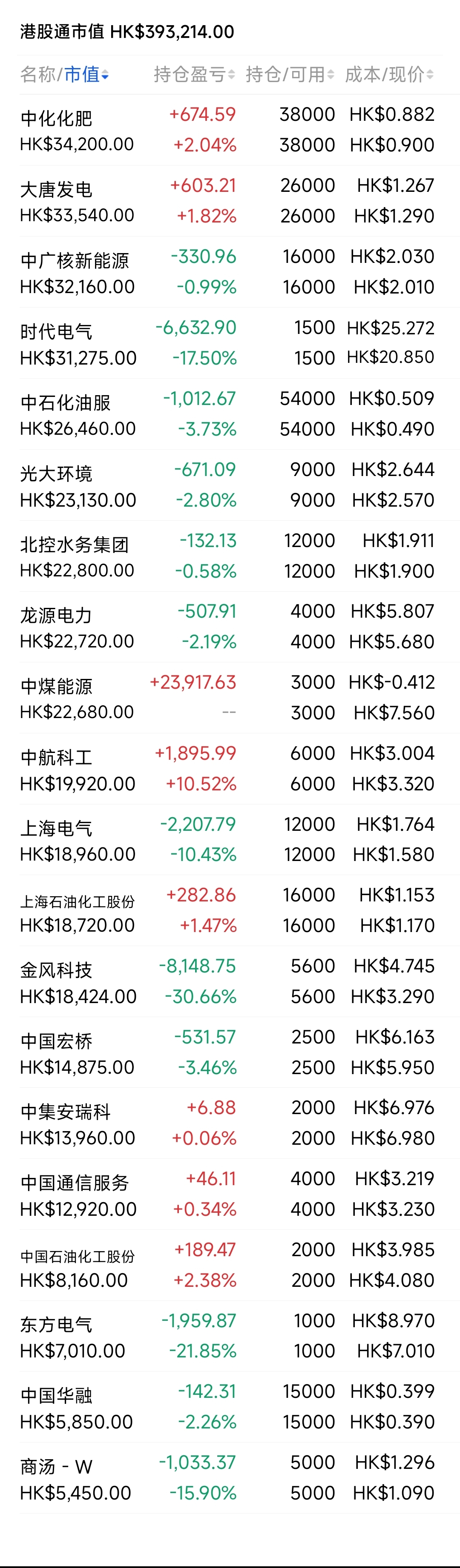 2021年12月觉得港股跌得差不多了,陆续投入部分资金分别摊些大饼,