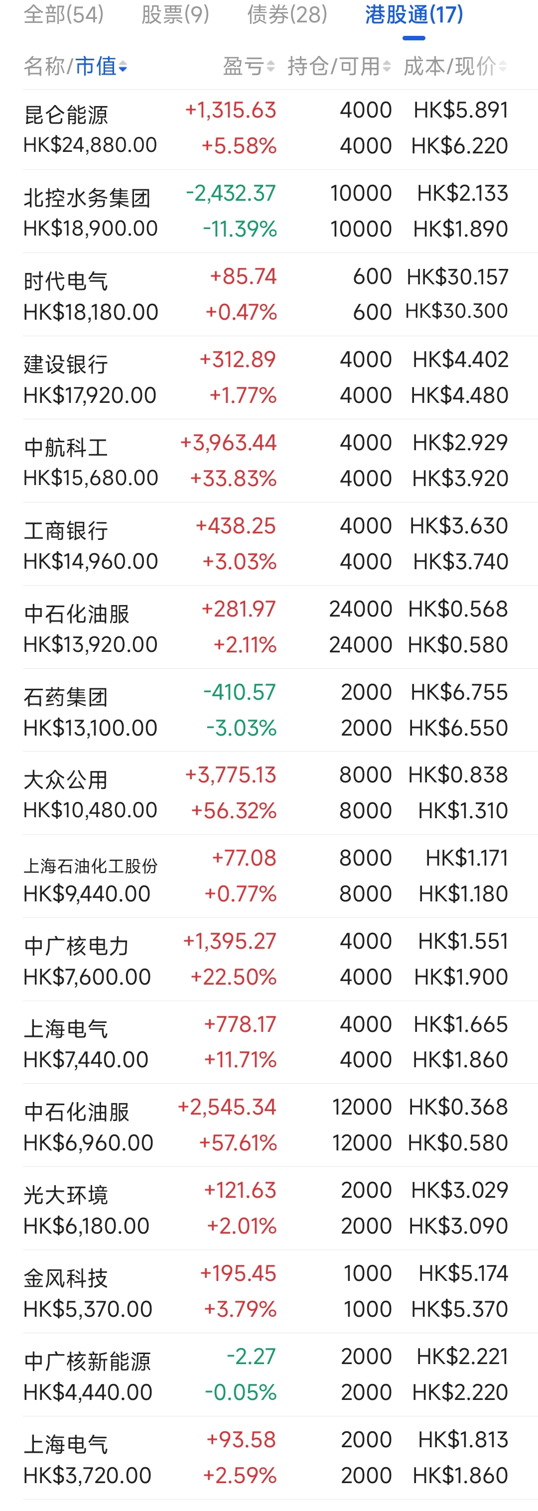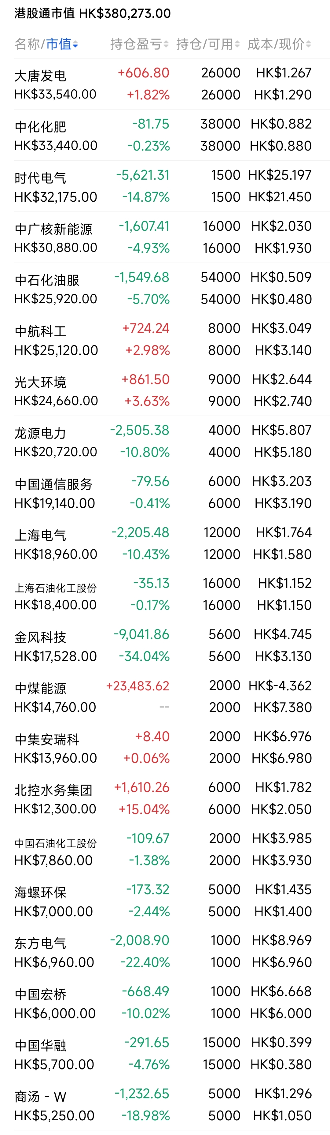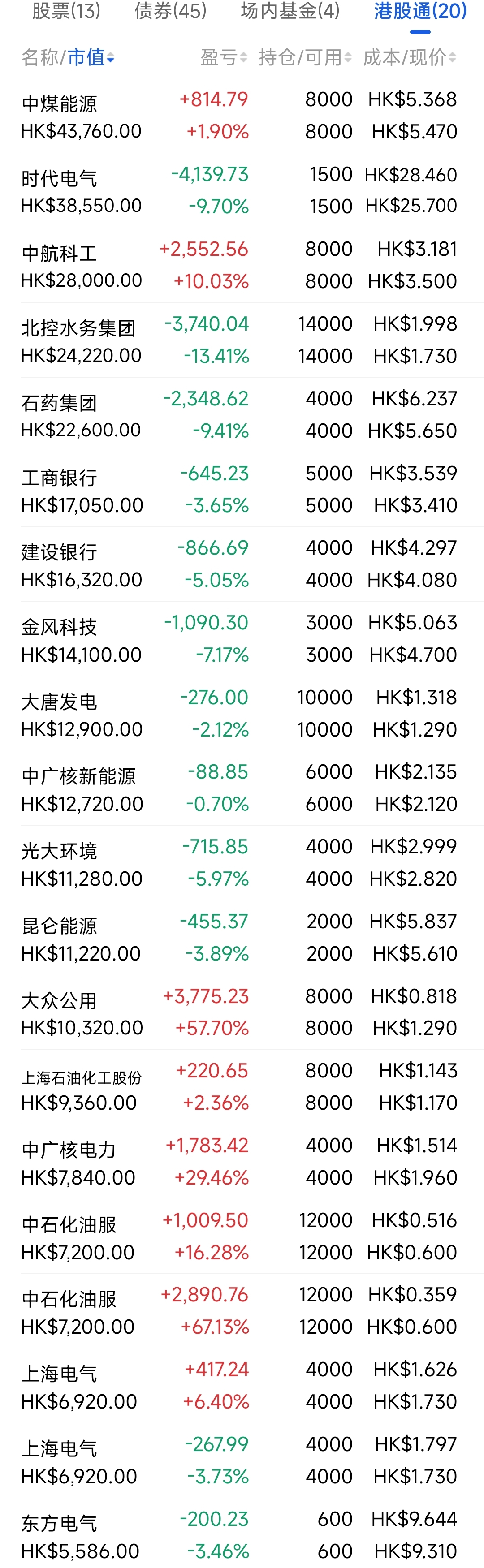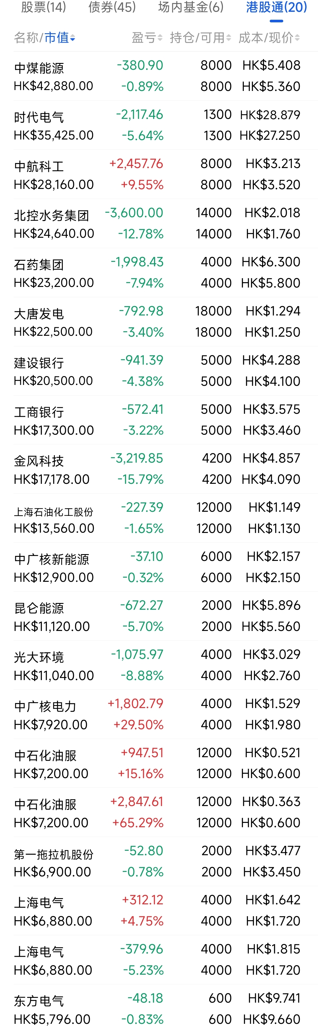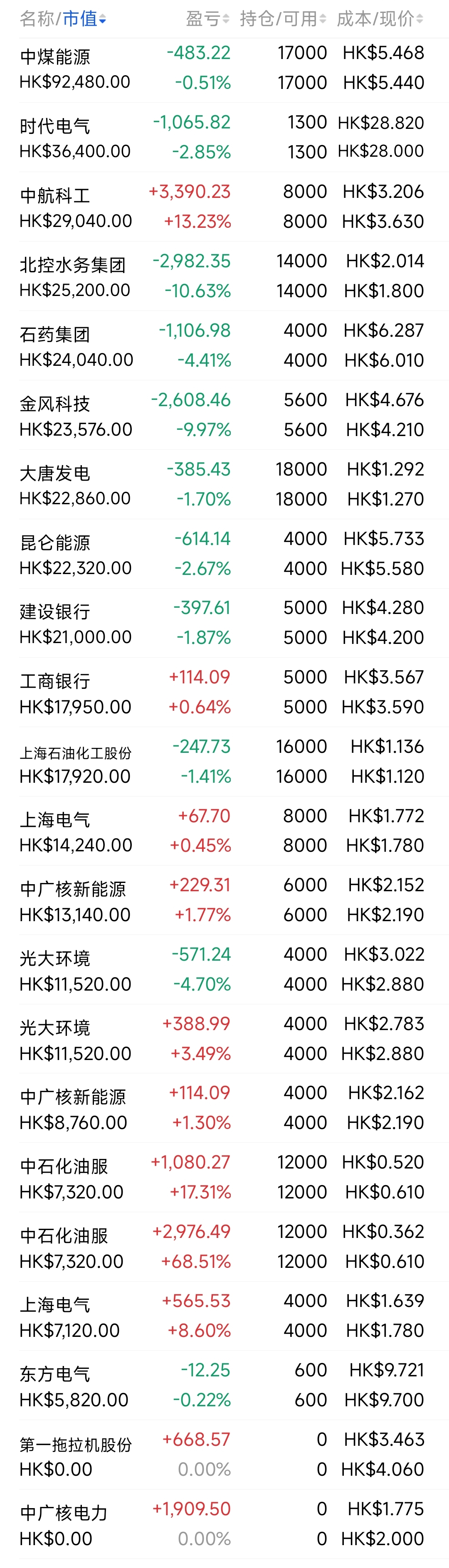2021年12月觉得港股跌得差不多了,陆续投入部分资金分别摊些大饼,