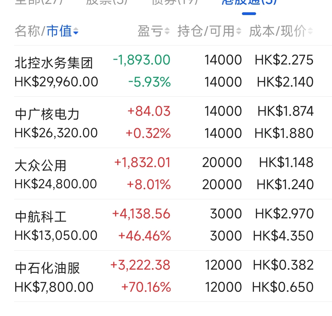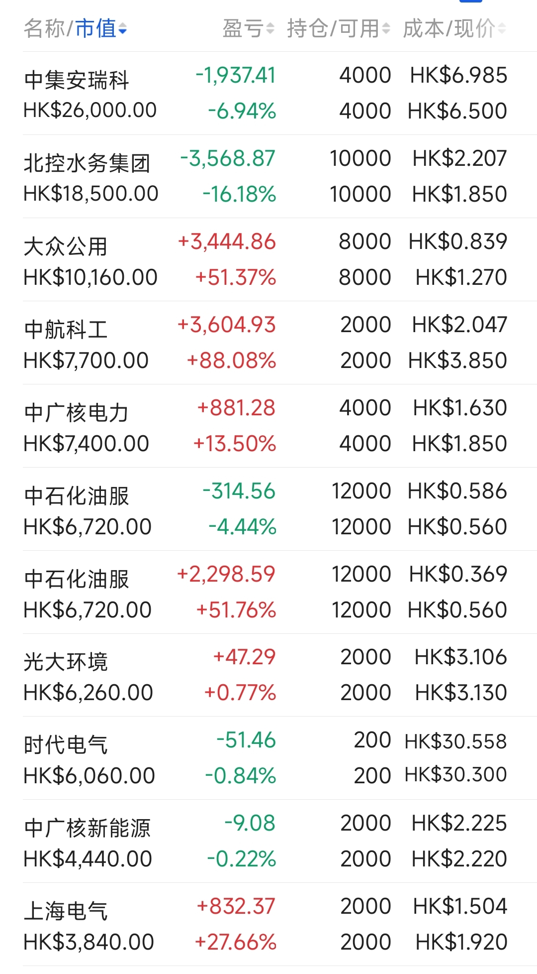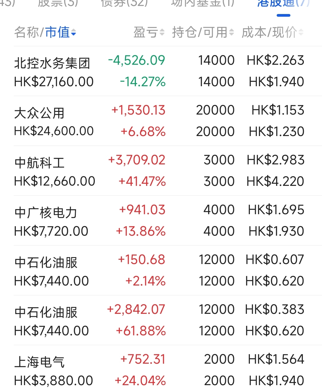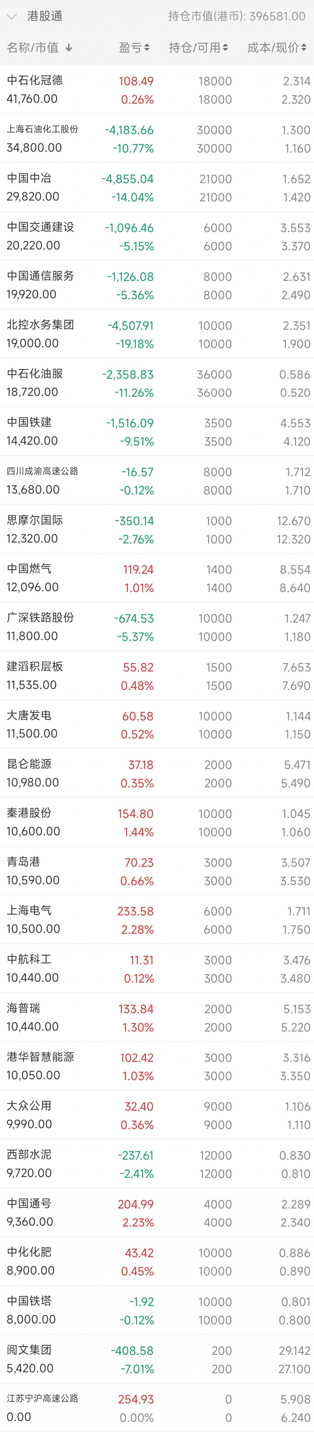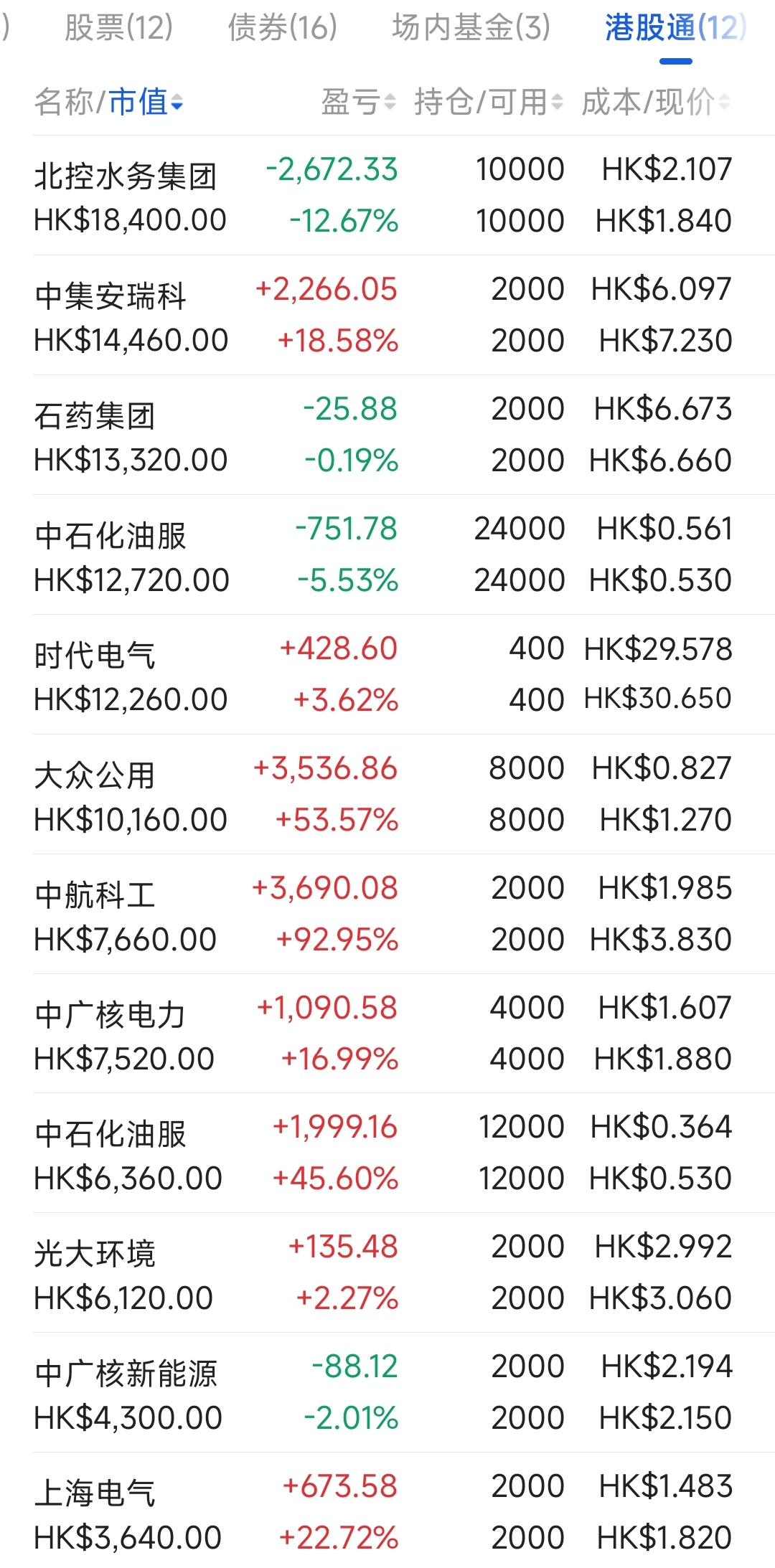 2021年12月觉得港股跌得差不多了,陆续投入部分资金分别摊些大饼,