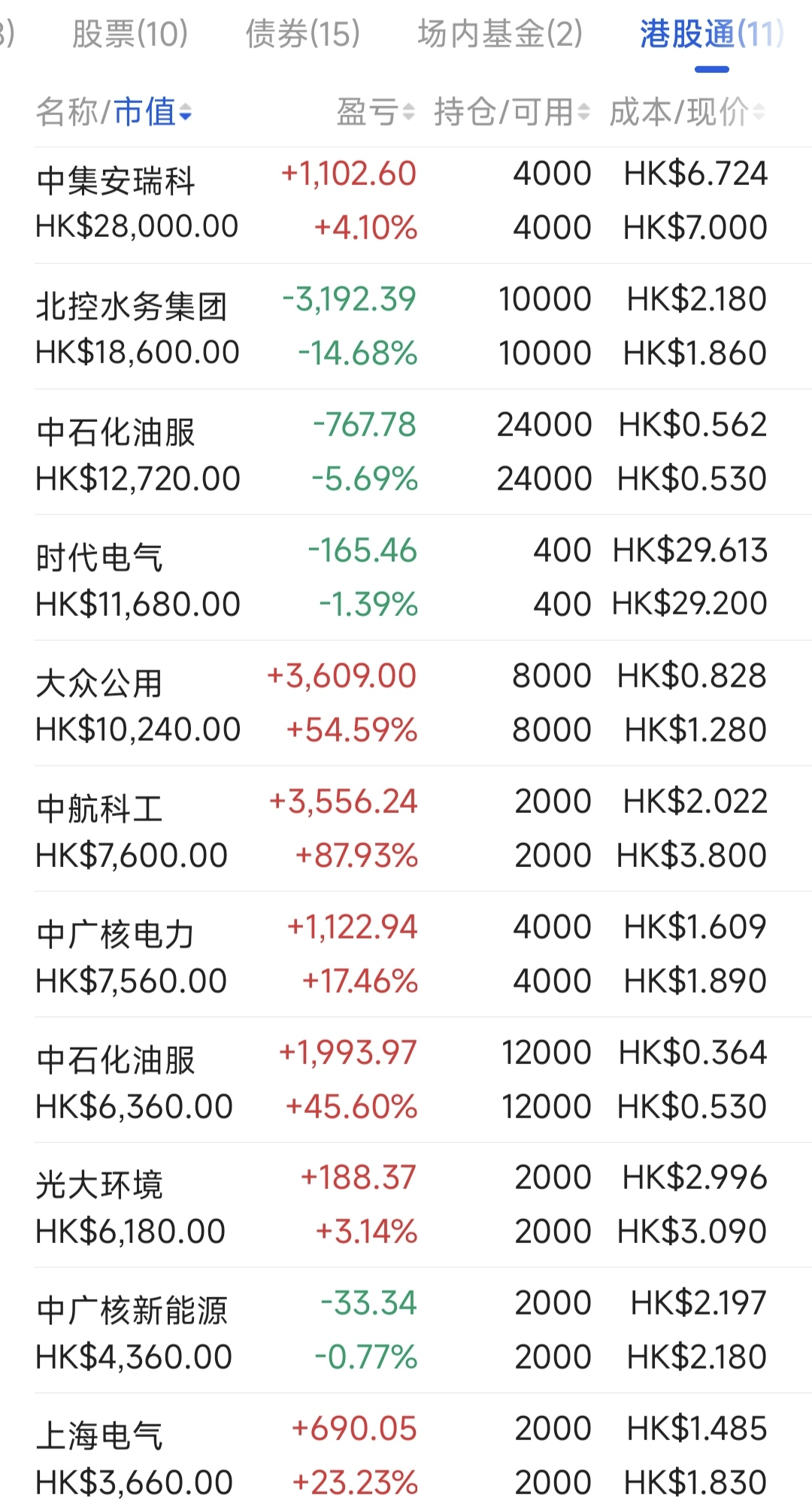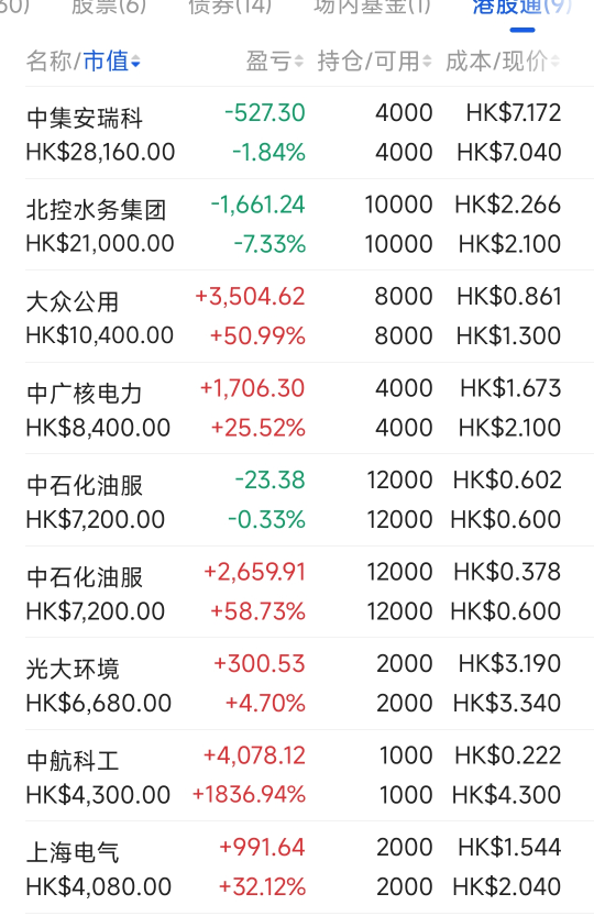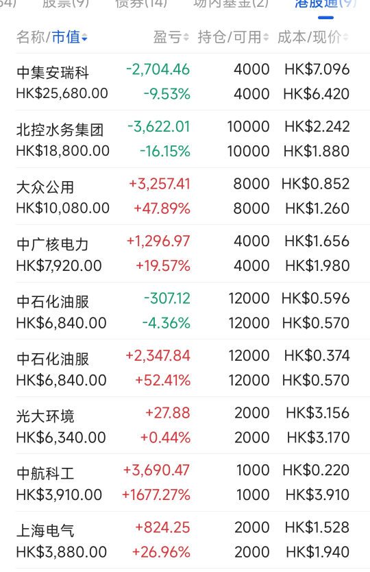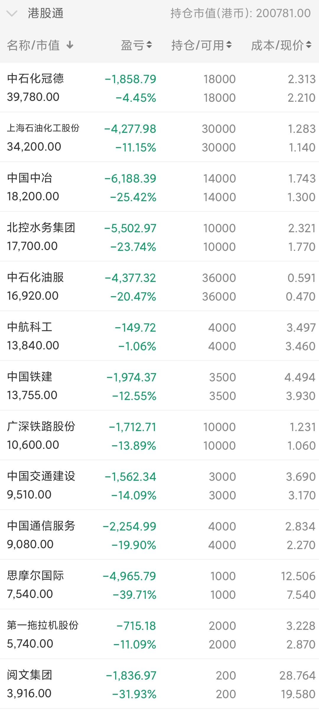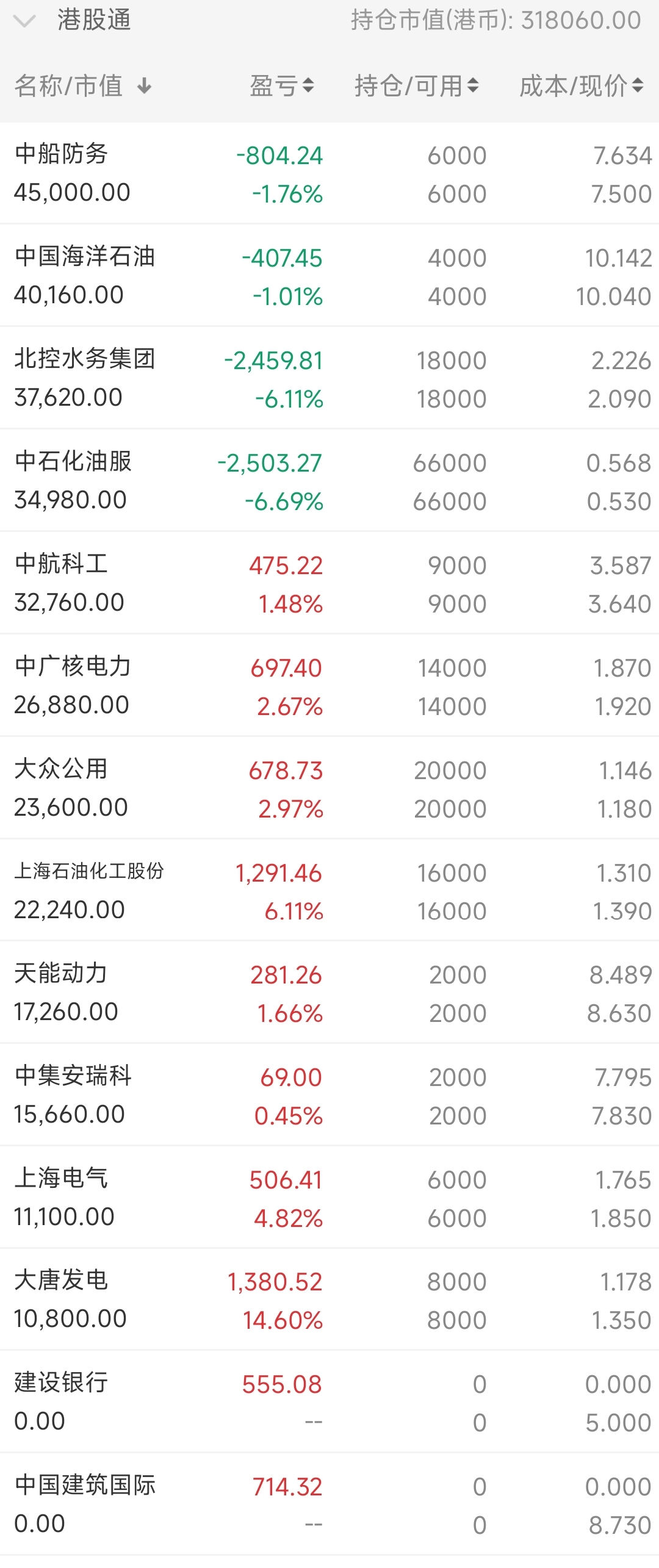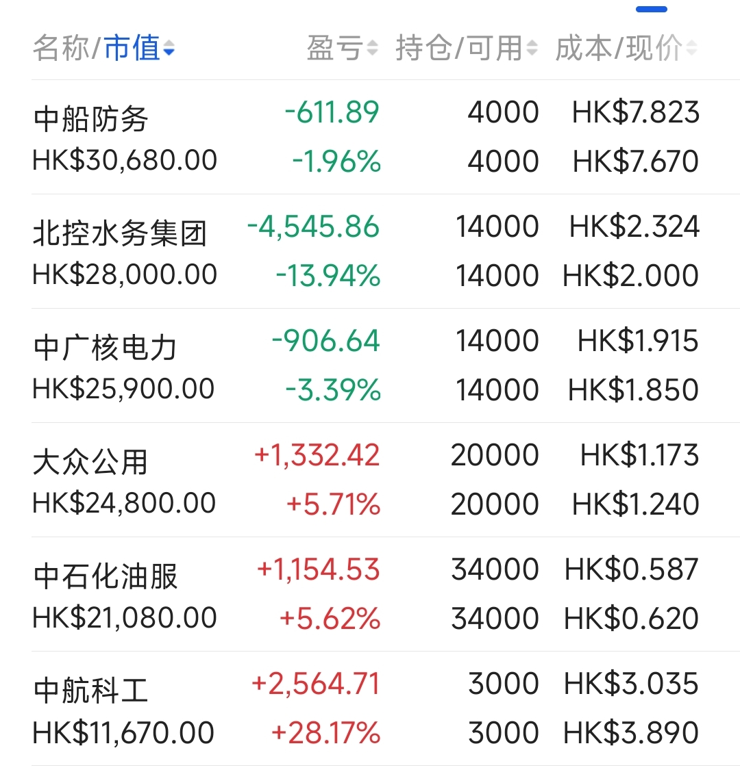 2021年12月觉得港股跌得差不多了,陆续投入部分资金分别摊些大饼,