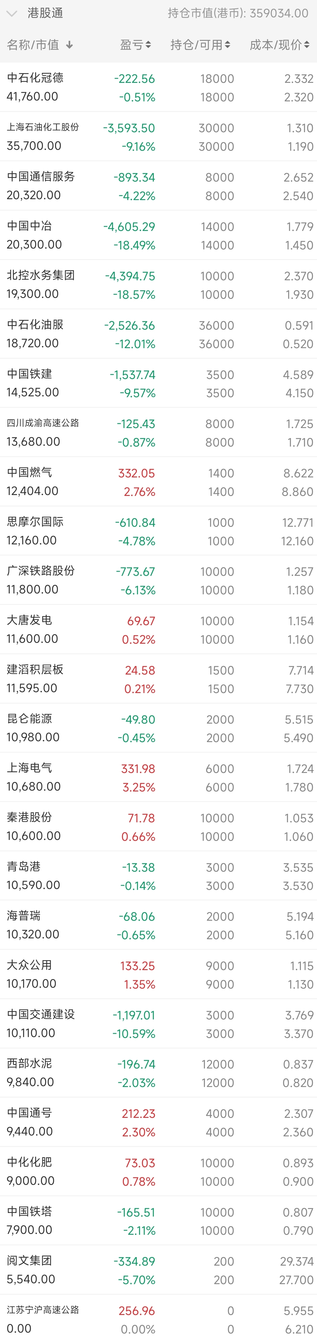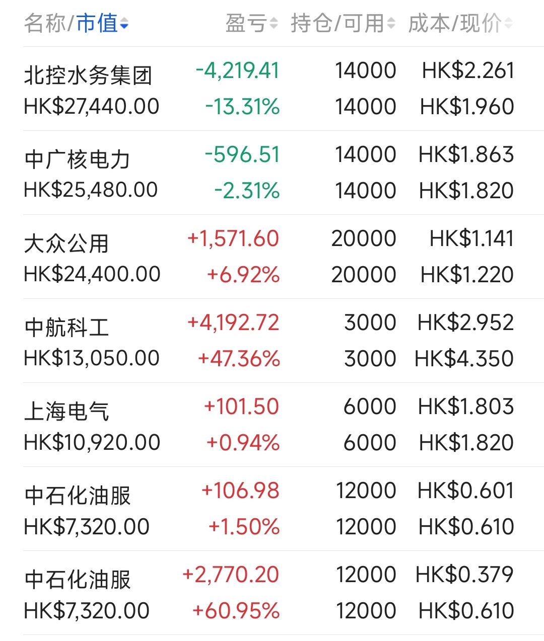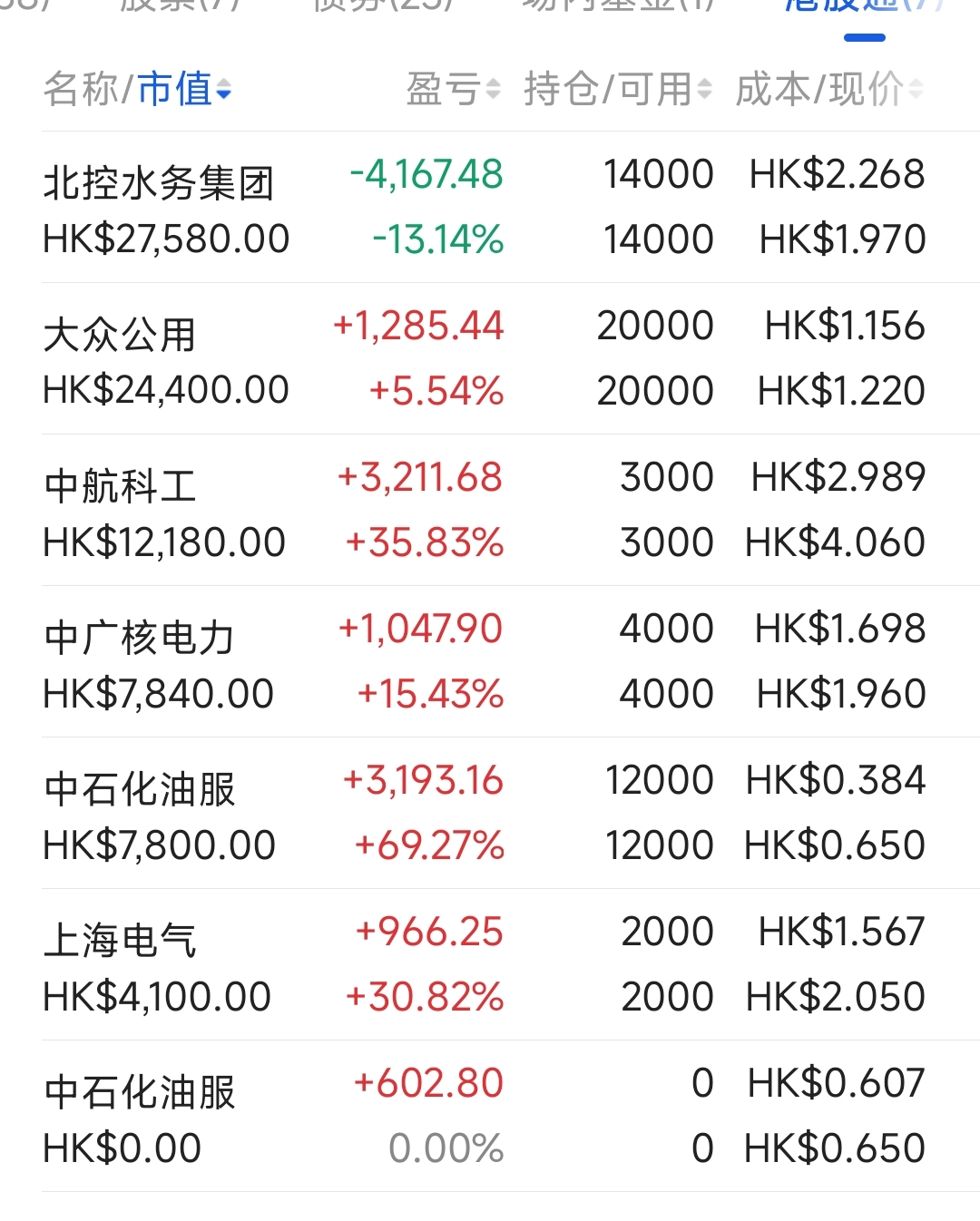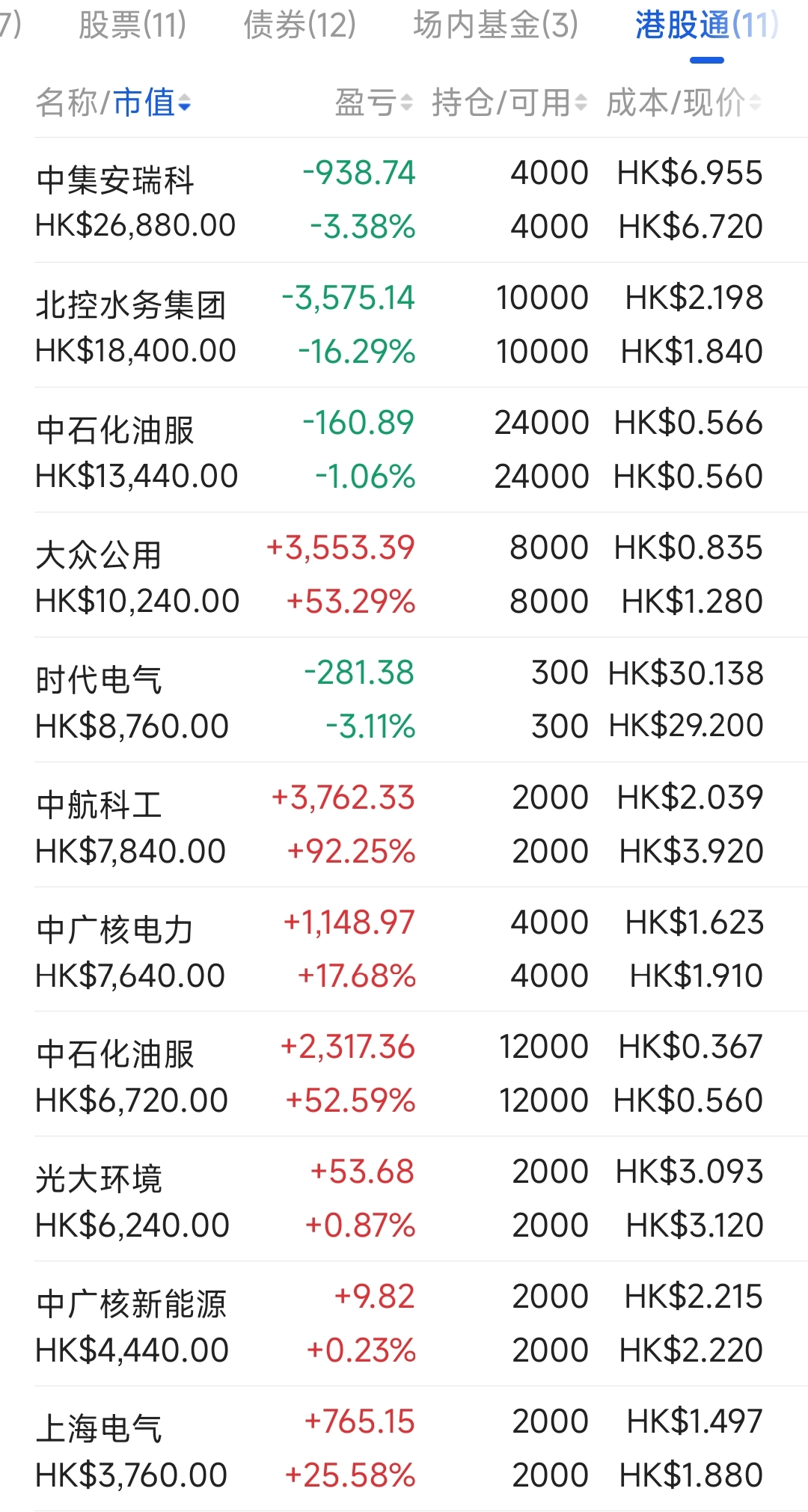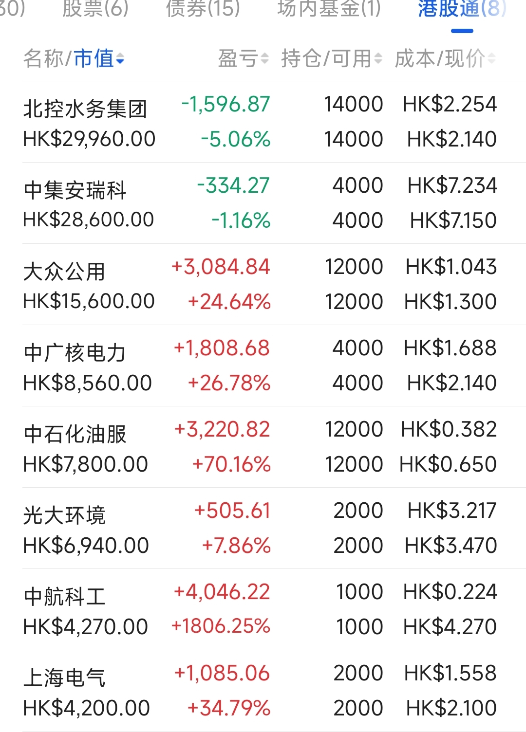 2021年12月觉得港股跌得差不多了,陆续投入部分资金分别摊些大饼,