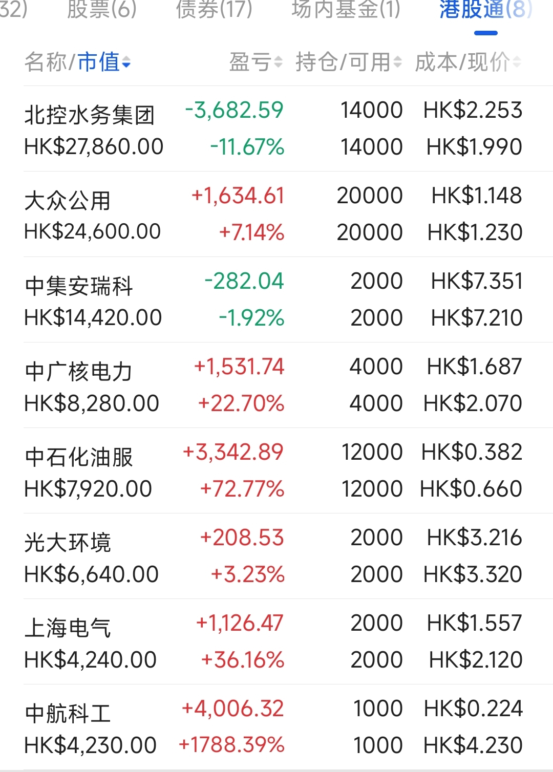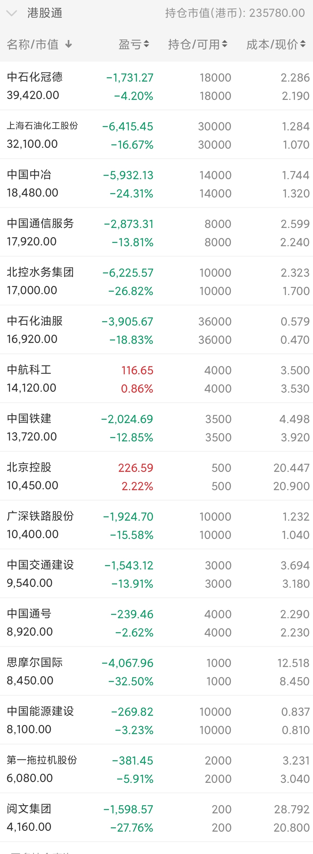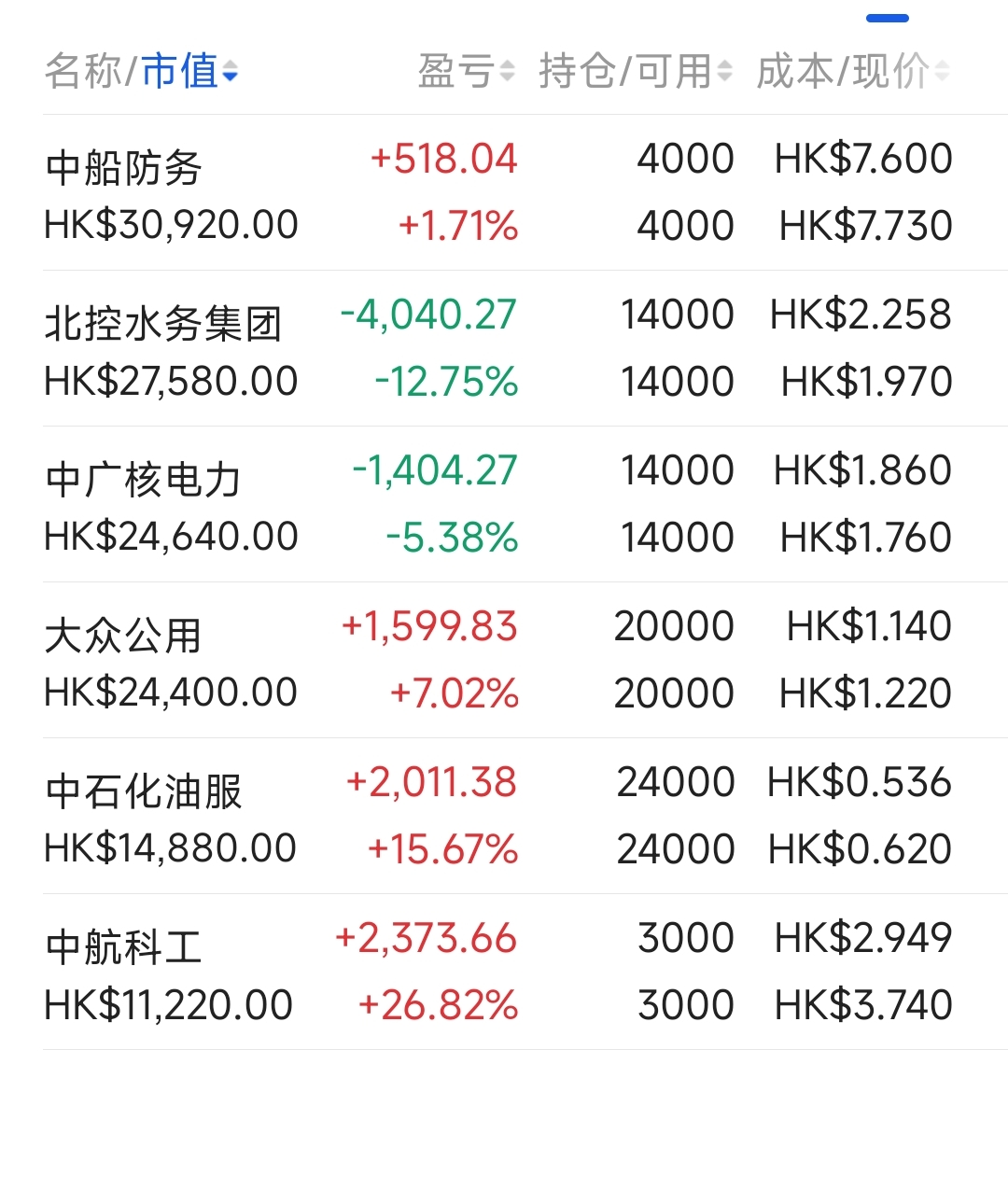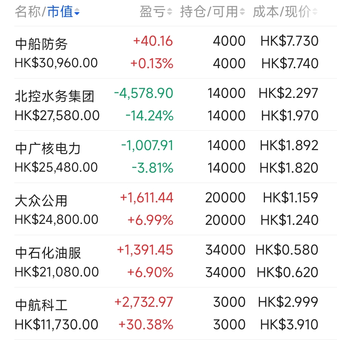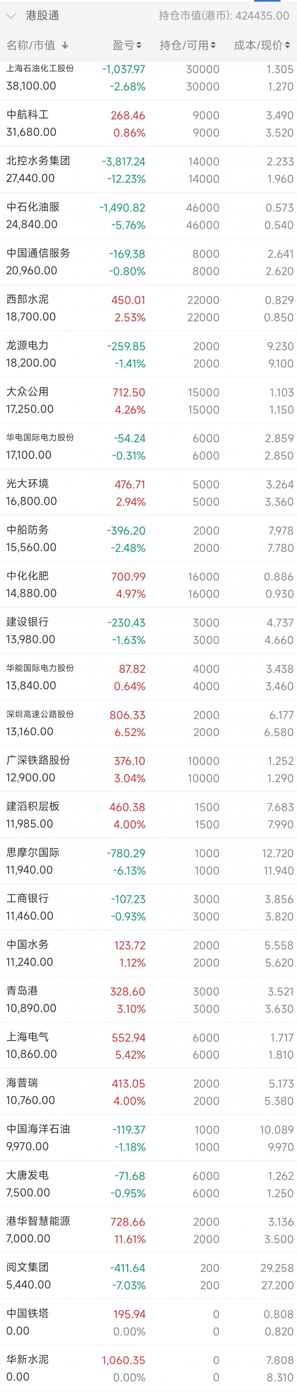 2021年12月觉得港股跌得差不多了,陆续投入部分资金分别摊些大饼,