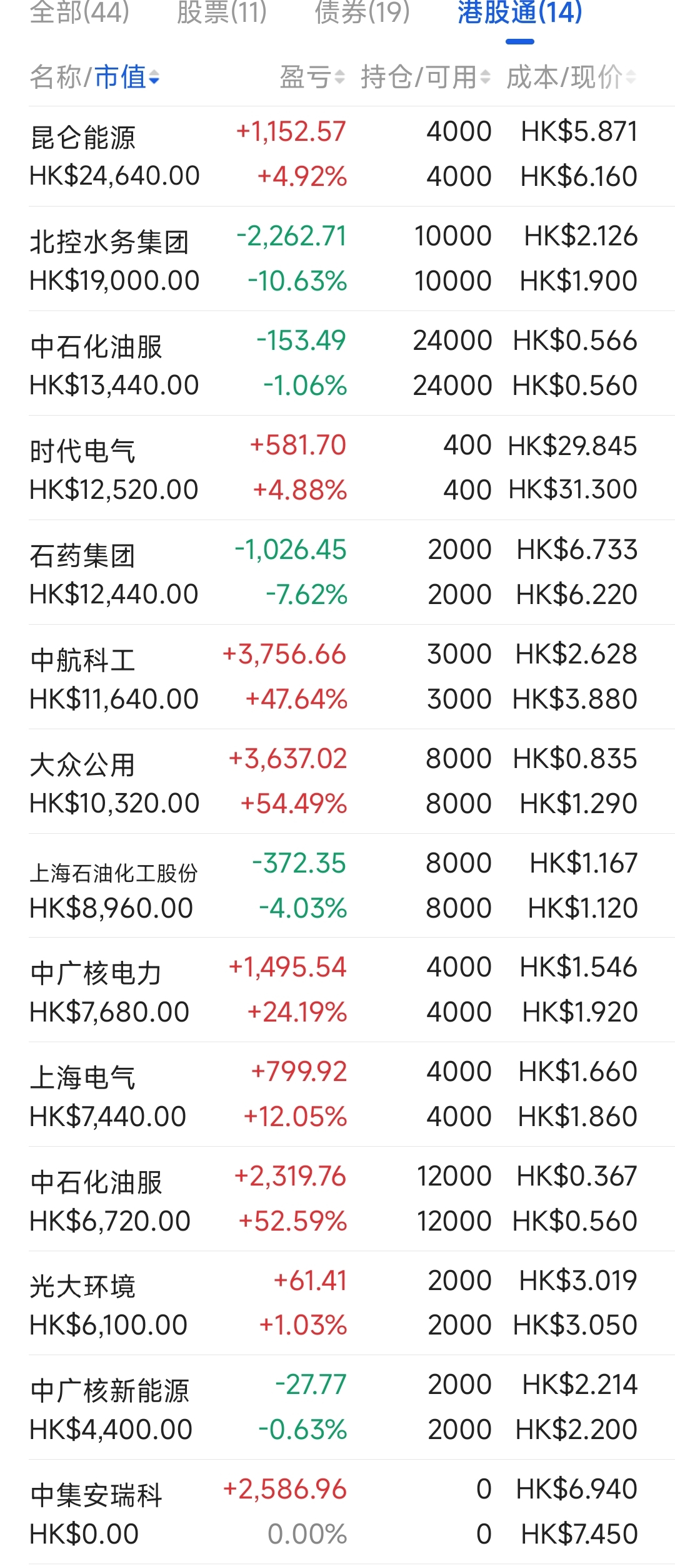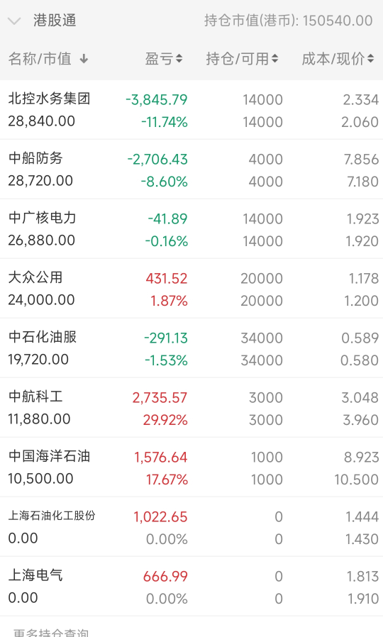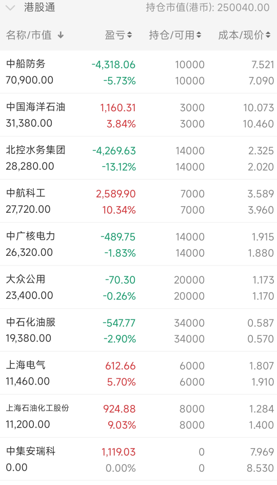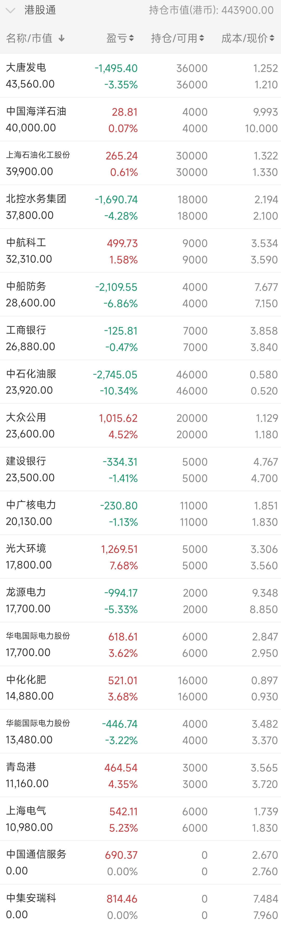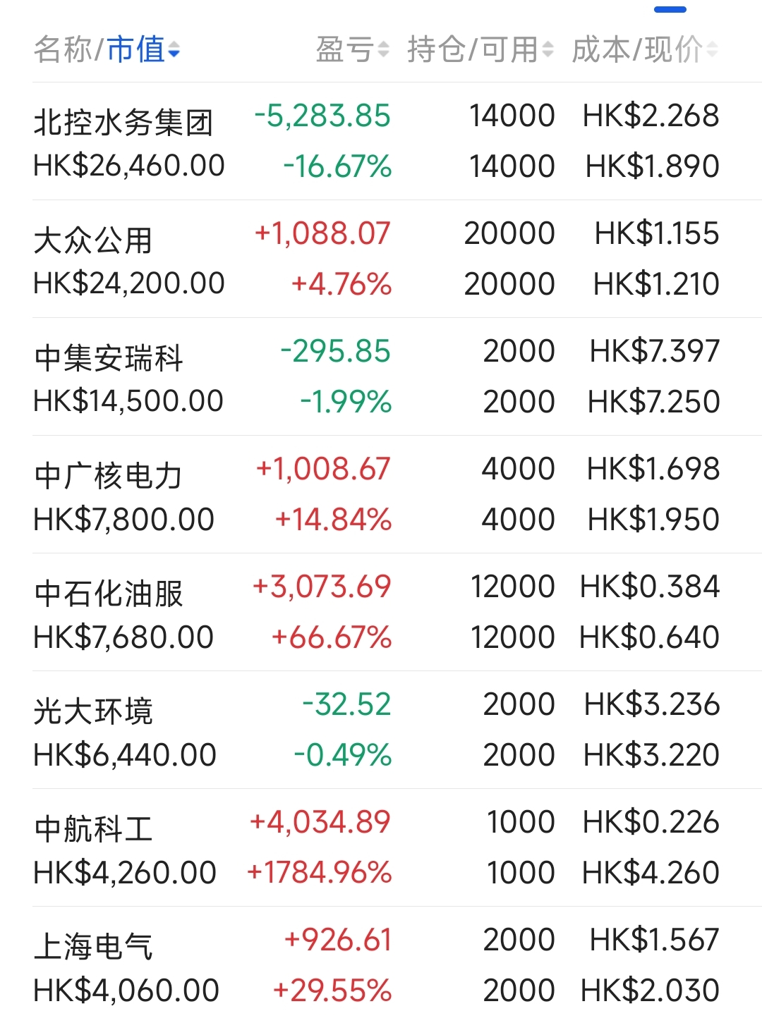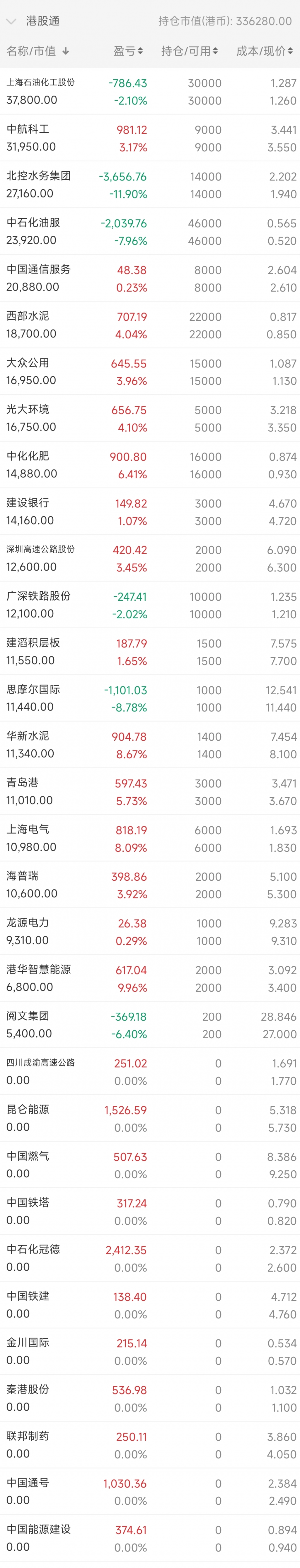 2021年12月觉得港股跌得差不多了,陆续投入部分资金分别摊些大饼,