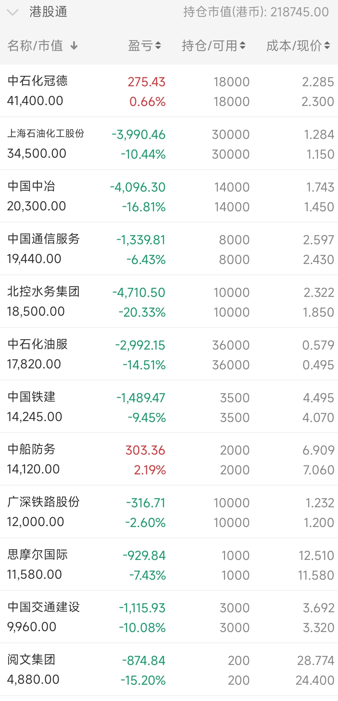 清海油。券商持仓界面变了,不太习惯。中海油H比中国海油A便宜好多,持有吃息去年也有16%了。即使红利税有28%,也比中石油A划算好多。同样的还有中国移动A也高于中国移动H50%。请教下为什么大家还在A股买这些中字头呢?