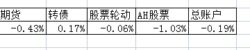 2、可转债开始还债了,降溢价。自己的策略涨时根不上,下跌不含糊。但是用的策略回测效果都是很好的,这次准备咬牙坚持,严格按策略不加入自己的主观判断了。之前主观剔除了一些转债,导致实盘结果与回测相去甚远。