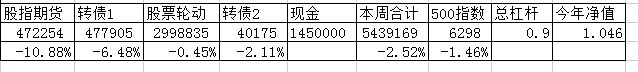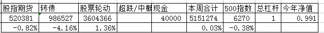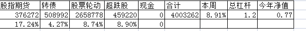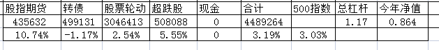 3、我以可转债或股票轮动为主策略,当指数估值较低、下跌幅度较大时,分出少部分资金利用期货杠杆逐步加仓。