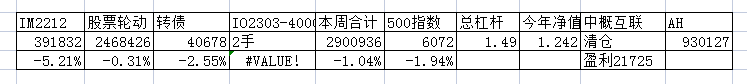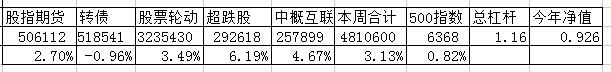 周三继续加仓,早盘把IH换成IC。杠杆变成1.139。