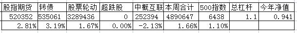 2、杠杆不可控,之前设想和其他策略搭配大幅下跌后用股指期货加仓,但往往那个时候杠杆越来越大不敢加仓了。故之前设想的加仓位,因为抽离资金缘故更不敢实施了。
