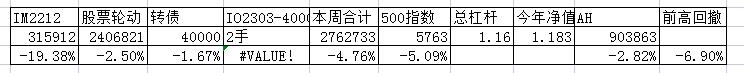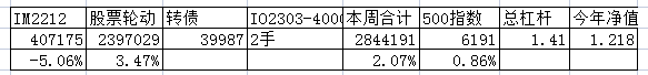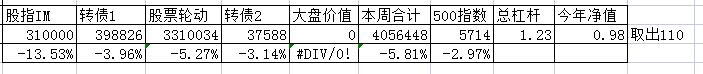 目前持有IC,IM各1手。想把杠杆控制在1.5以内,近期继续跌也不加了。IC再跌500以上,可能会加1手。到时候估计杠杆会达到1.7以上。 那时候再跌就不加了,死扛等待了。