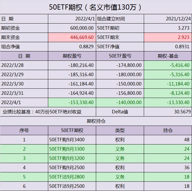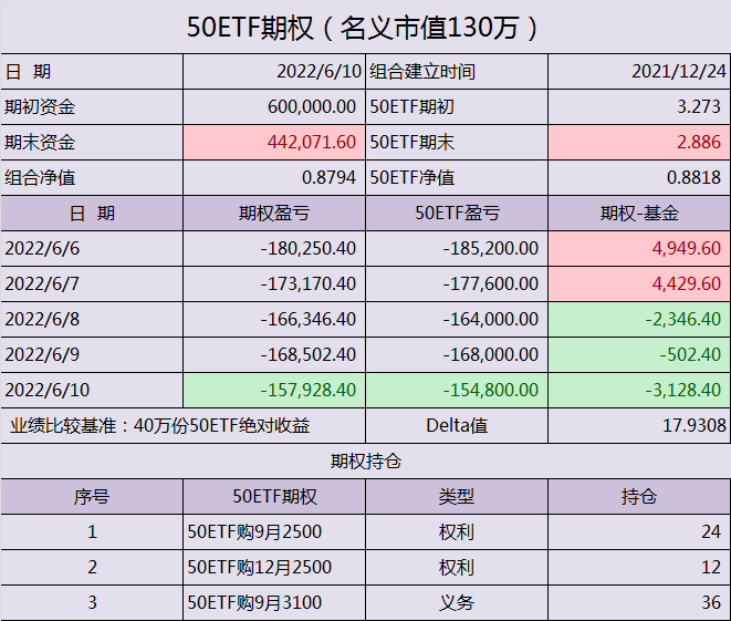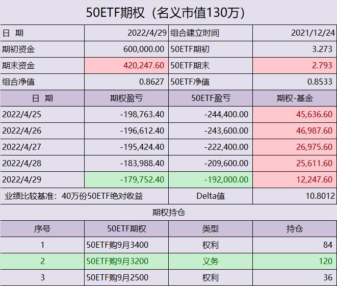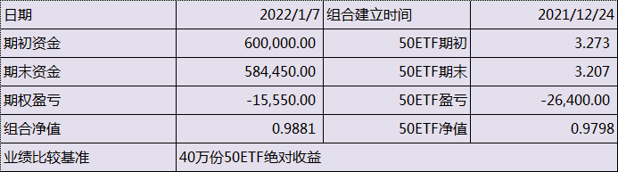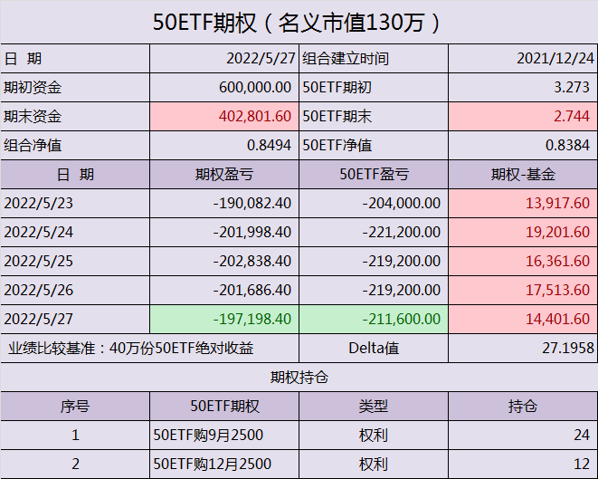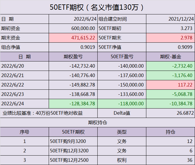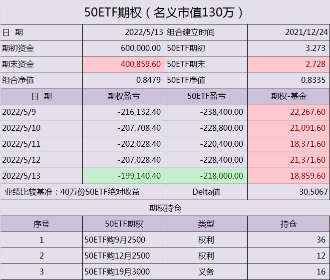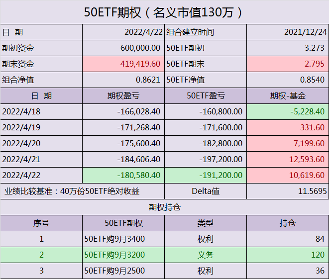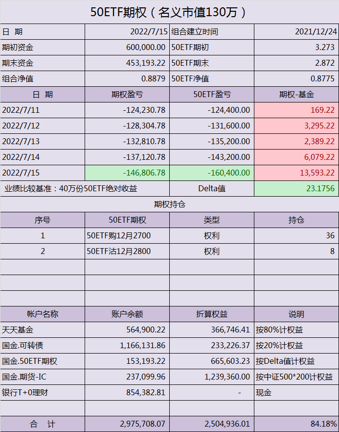 用60万资金做50ETF期权,以2021.12.24日收盘价计算,约等于130万市值。节约出来的资金用来配置基金,单独计算收益。