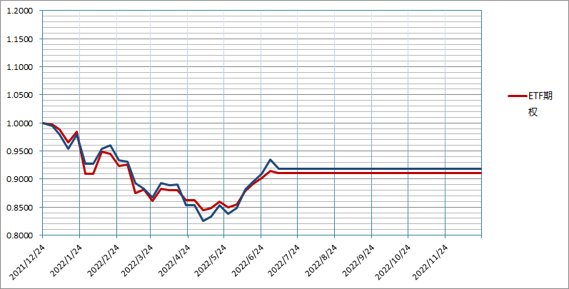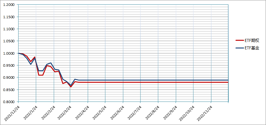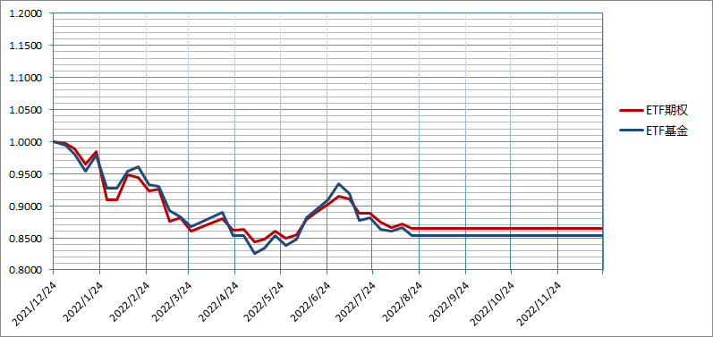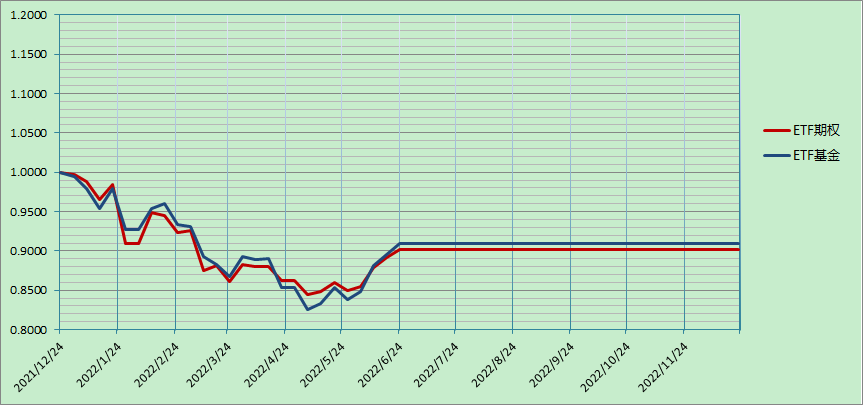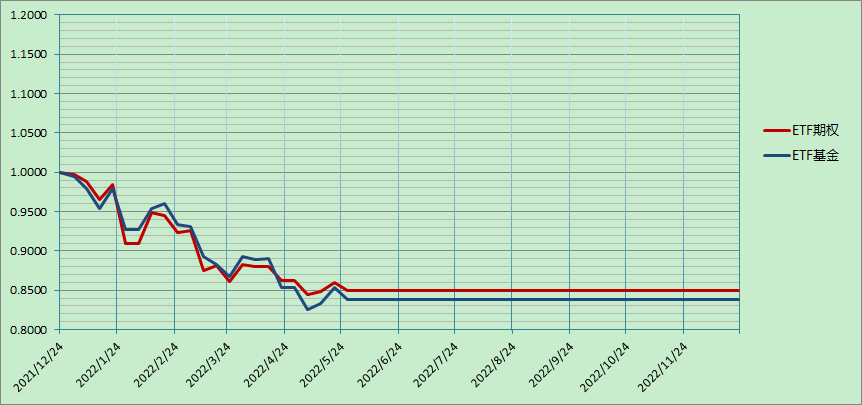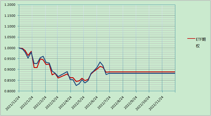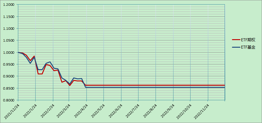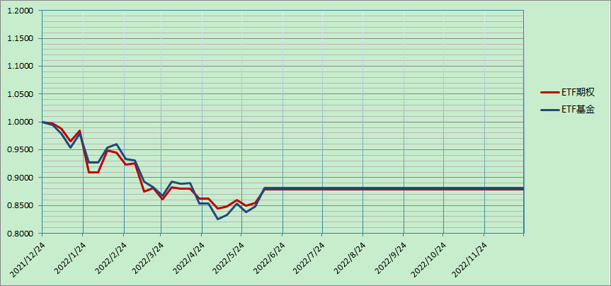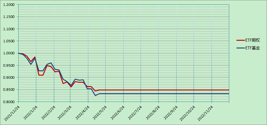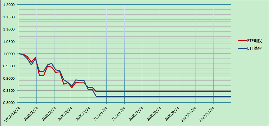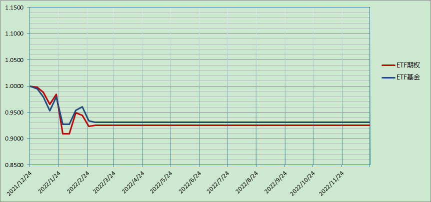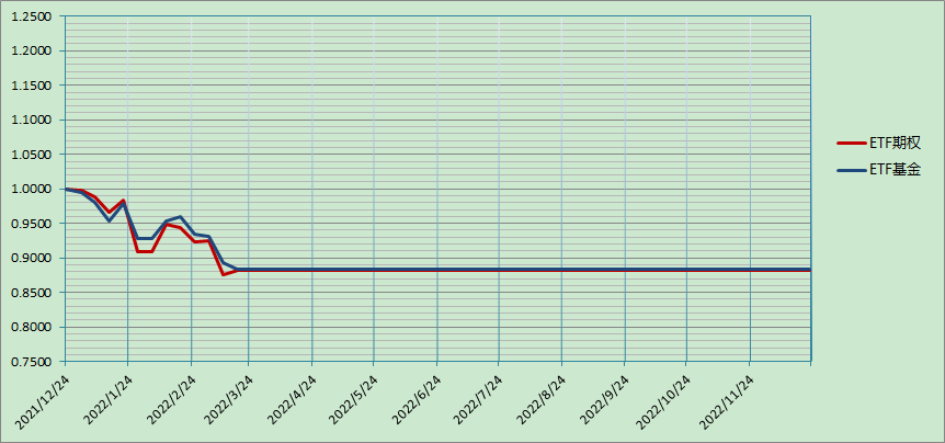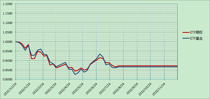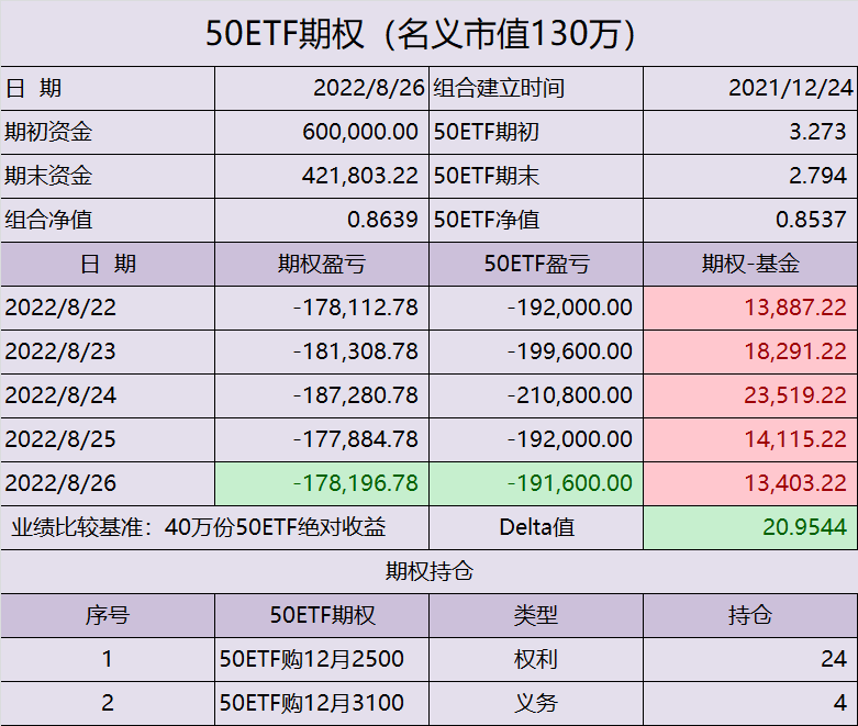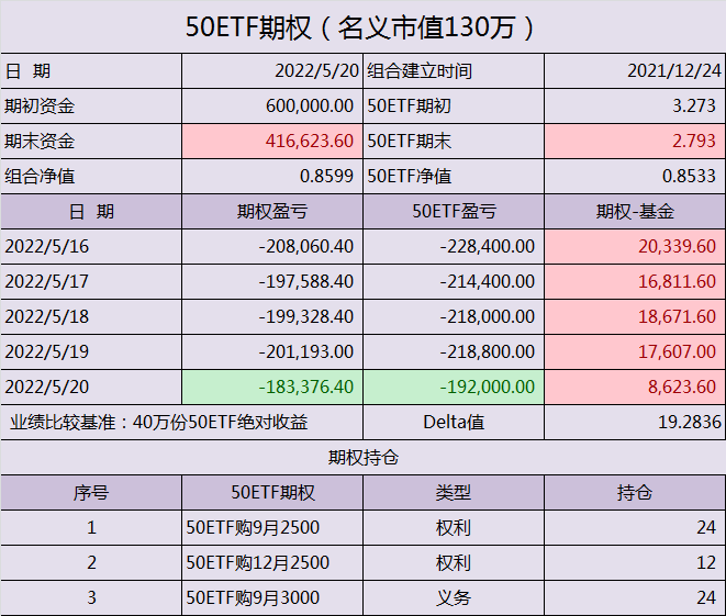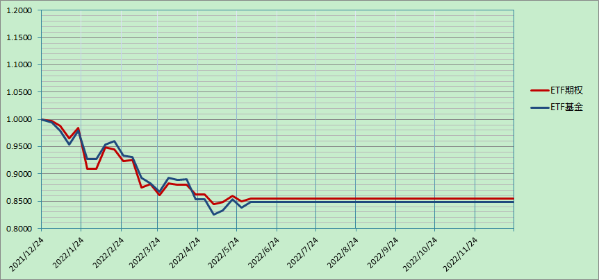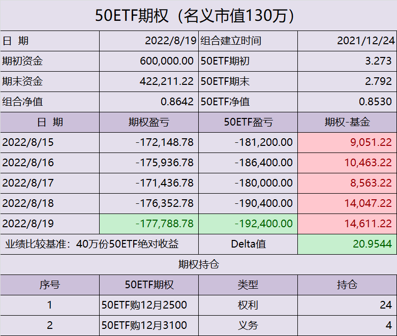 Delta值22.92的ETF期权的可能就真的跑不赢40万份ETF基金了,先运行一年再说。