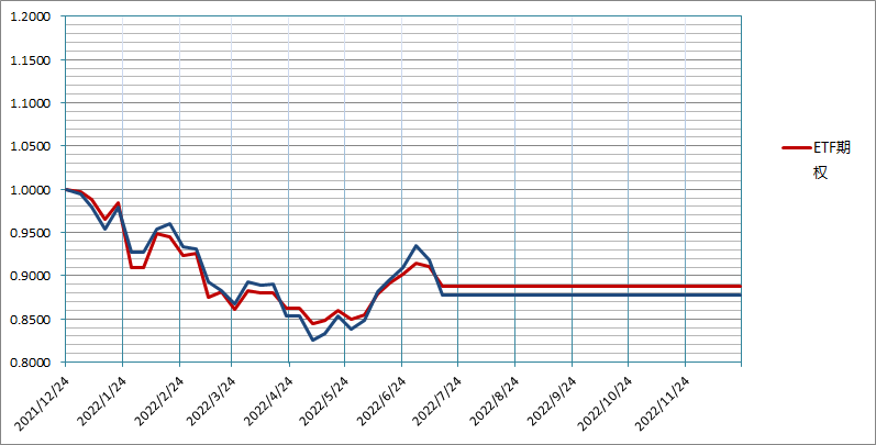 再观察几个月,如果差距越来越大,就要重新检讨期权策略。