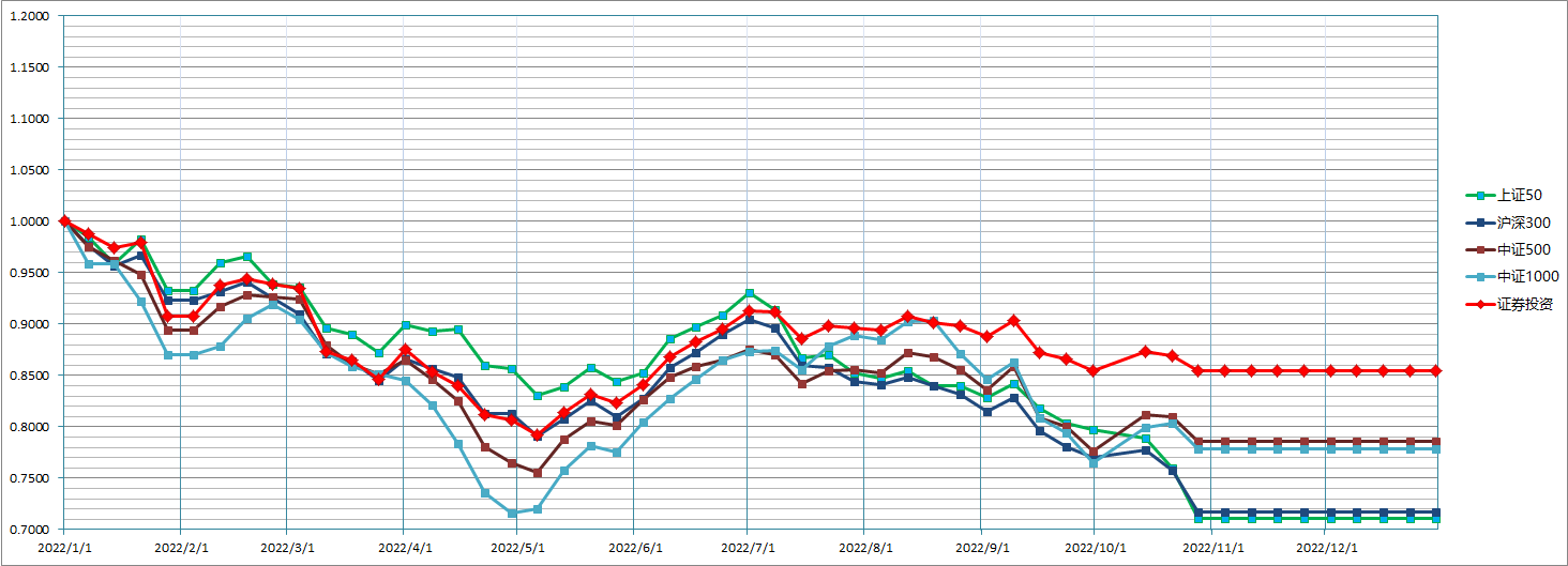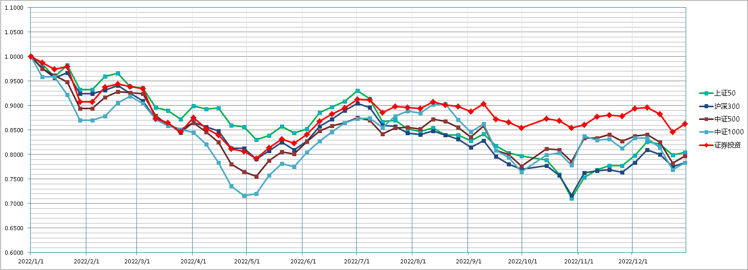 以前,我一直把证券净值和沪深300、中证500进行对比,今年加入了上证50。