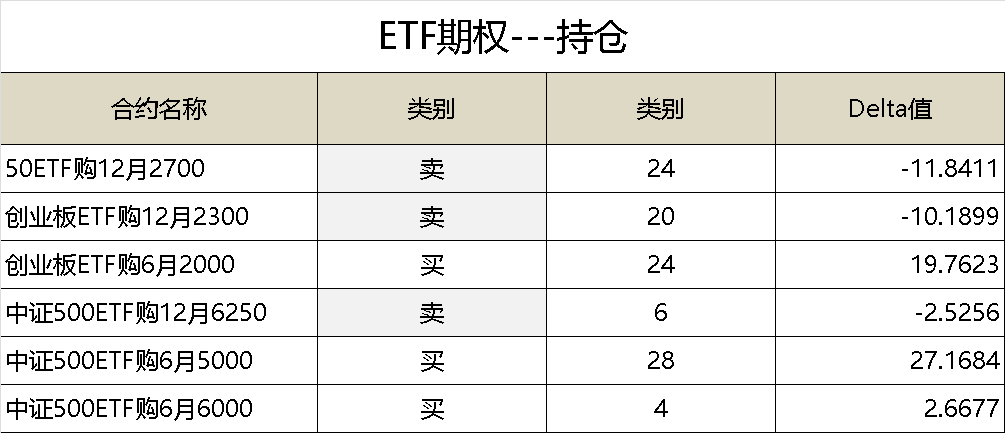 新增16组创业板ETF期权对角牛差,后续如果下跌,继续增持。